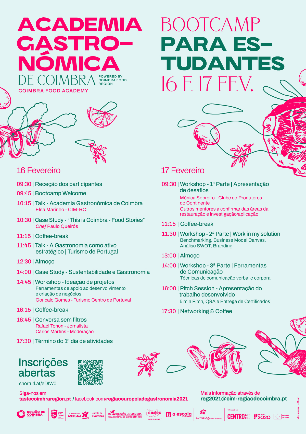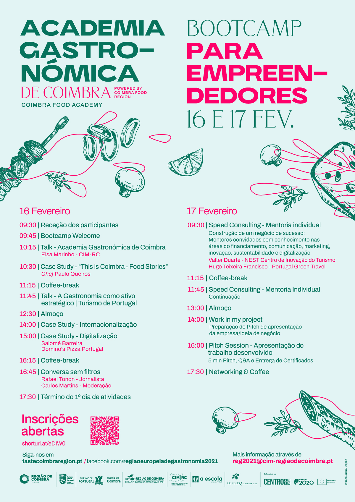 Com a apresentação de talks, "case studies" e a possibilidade de um acompanhamento personalizado por parte de mentores convidados, esta ação visa contribuir para o desenvolvimento de ideias de negócio e qualificação de projetos na área da gastronomia.