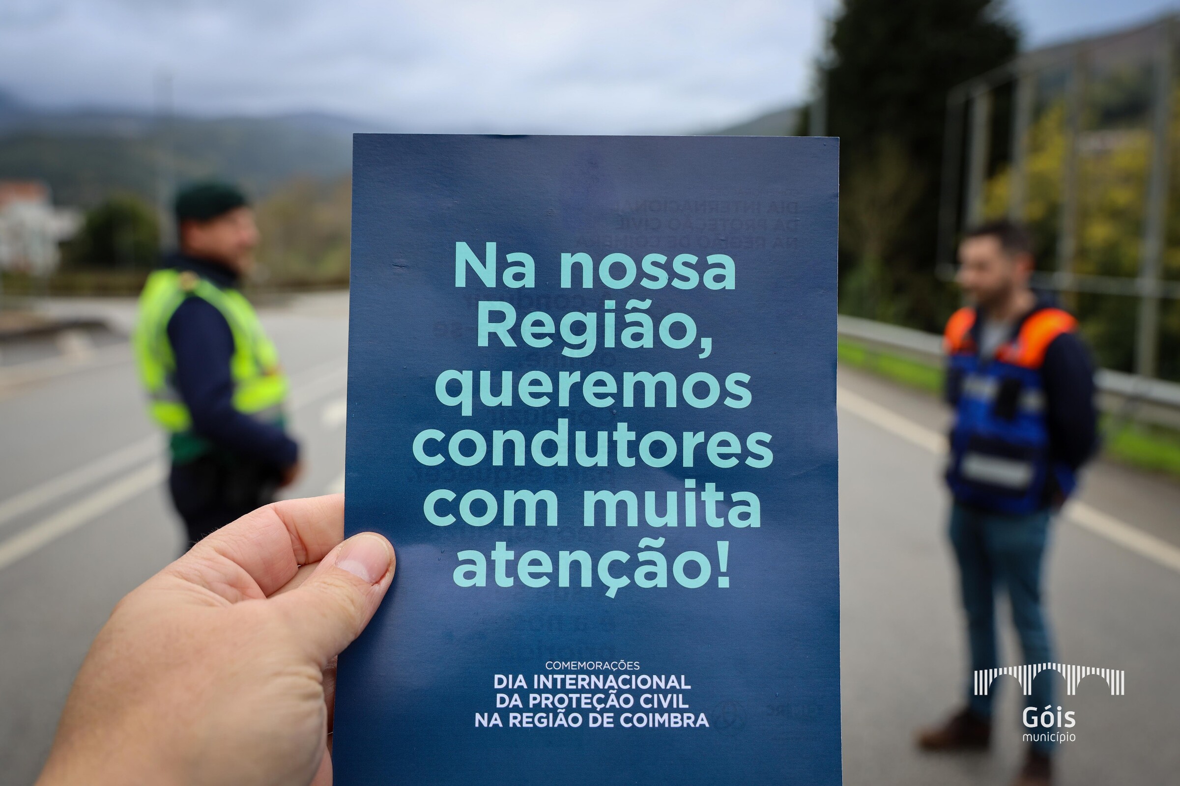 No âmbito das comemorações do Dia Internacional da Proteção Civil 2025 na Região de Coimbra, o serviço de Proteção Civil de Góis dinamizou, esta manhã, com o apoio da Guarda Nacional Republicana - Posto Territorial de Góis e da Associação Humanitária de Bombeiros Voluntários de Góis, uma ação de sensibilização rodoviária com o objetivo de alertar os condutores para os perigos de algumas práticas ao volante, nomeadamente, o excesso de velocidade, condução sob o efeito do álcool e o uso de telemóvel durante a condução.