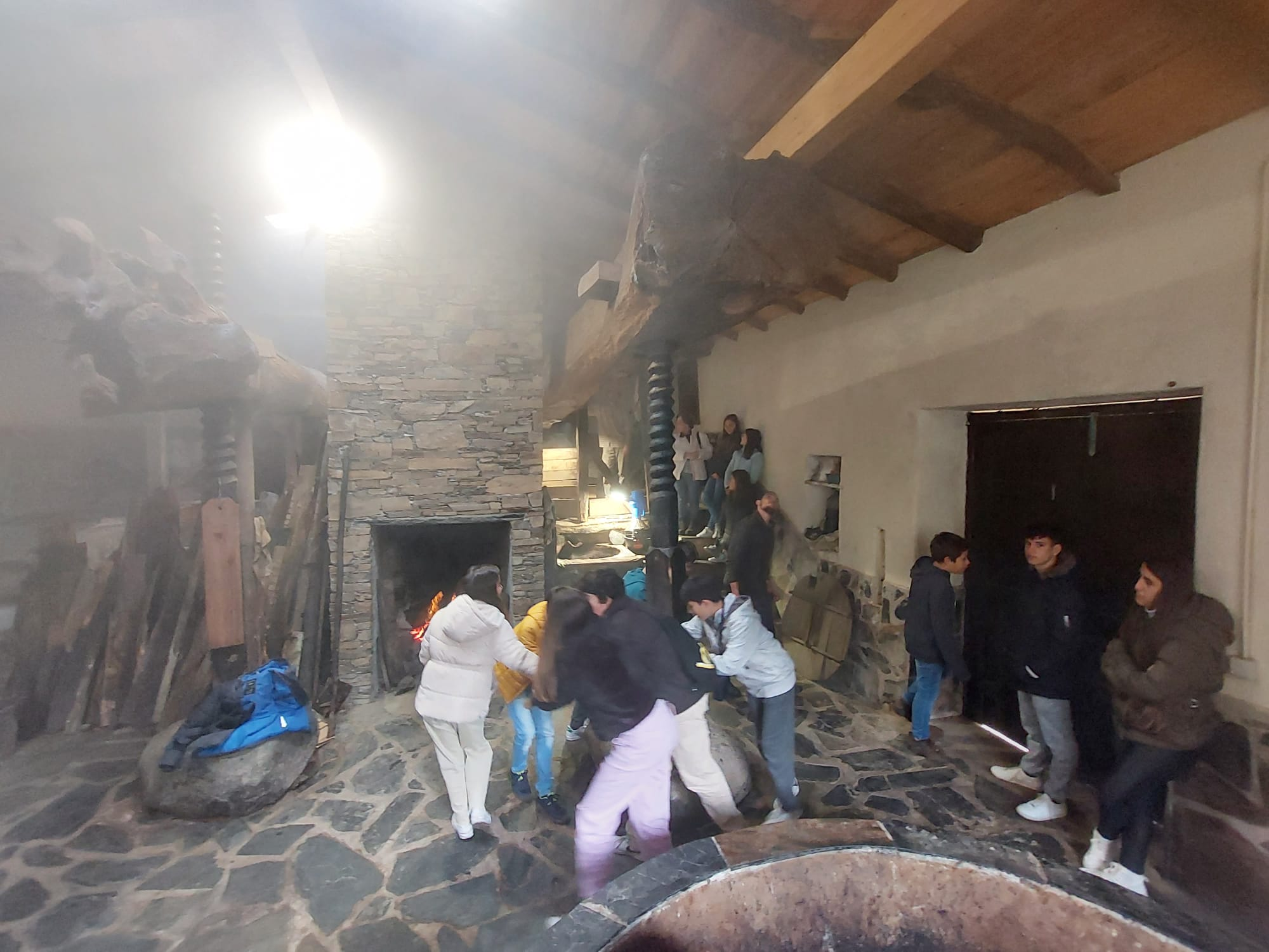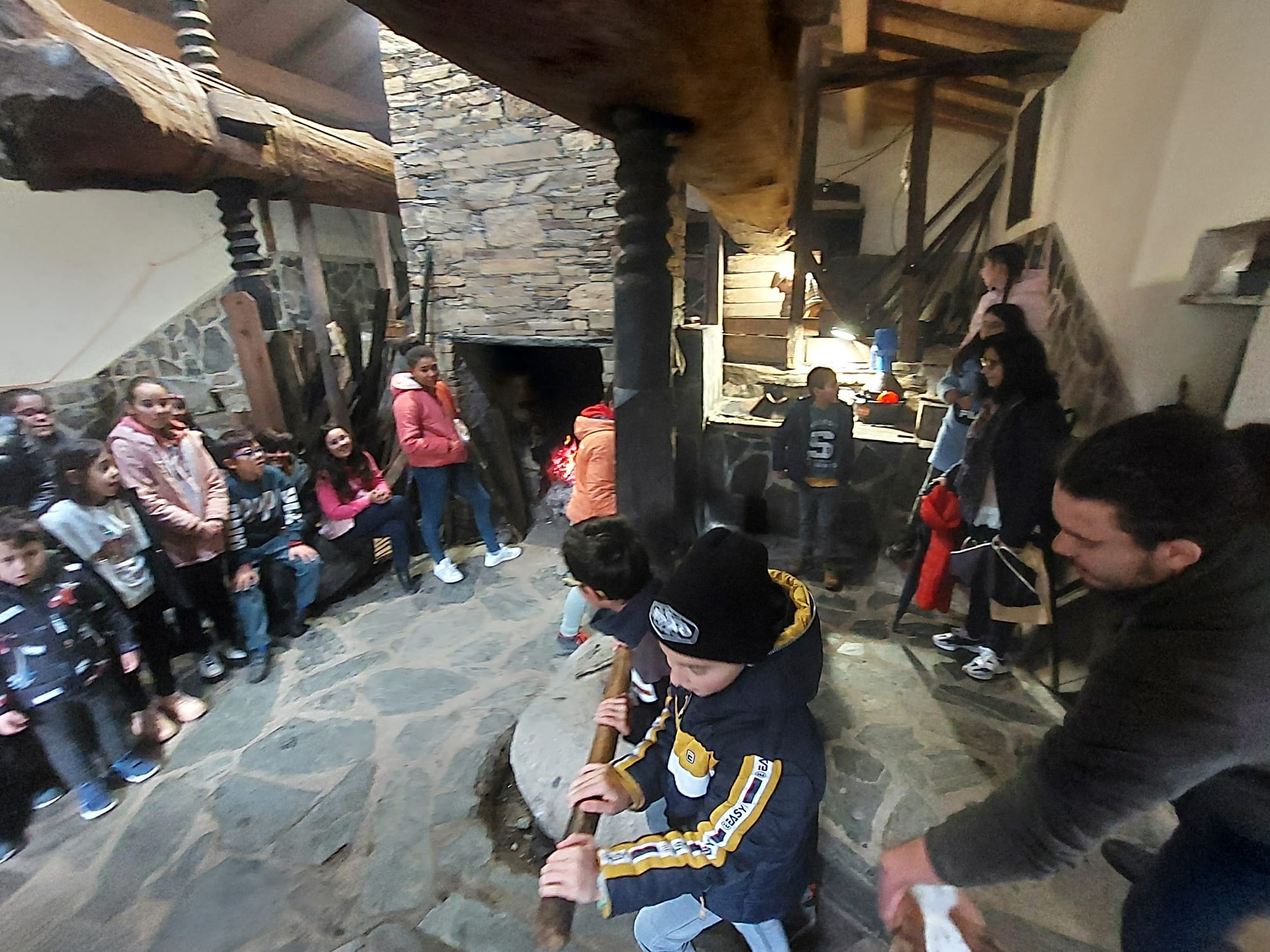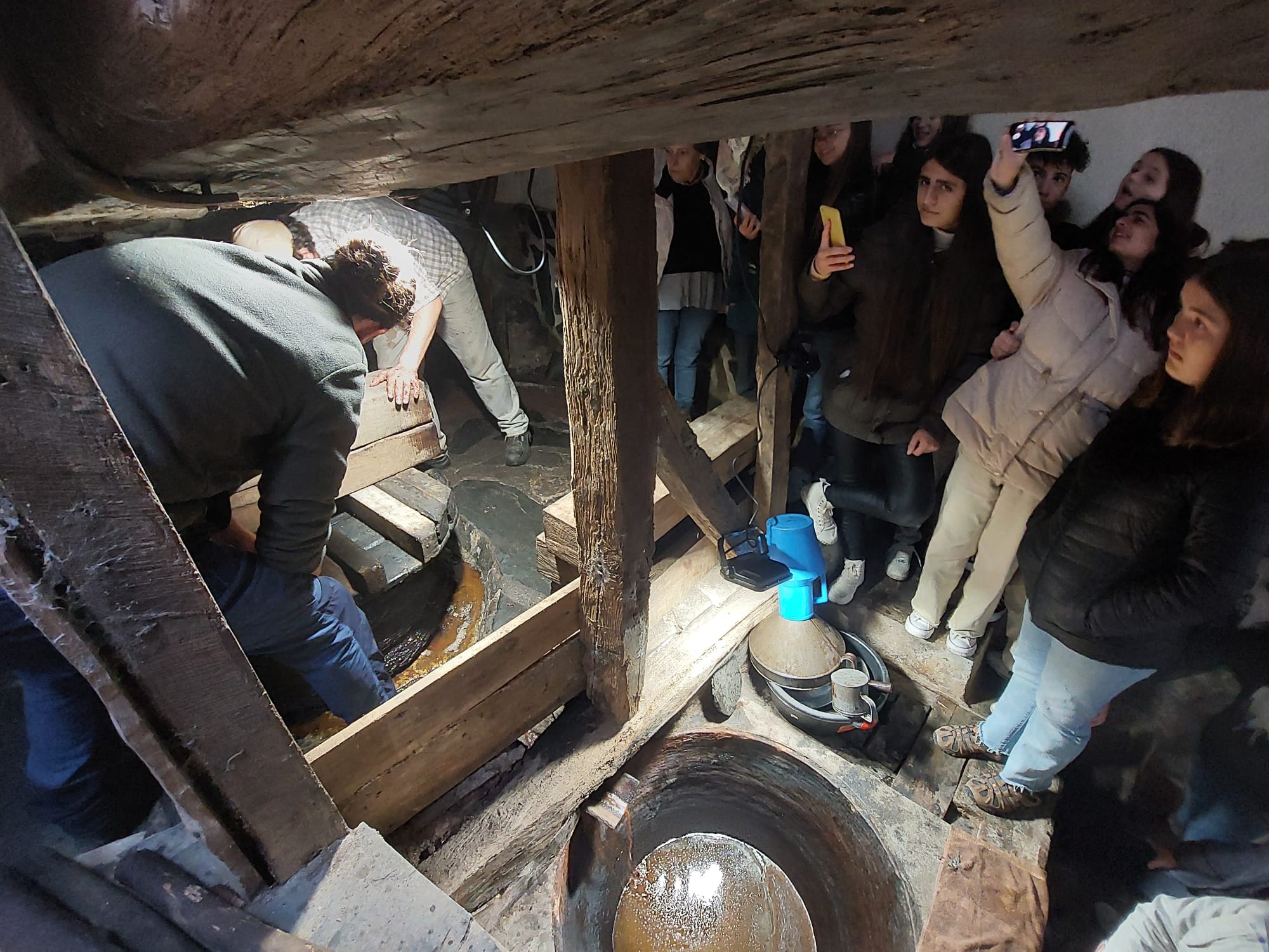 Através de visita interpretativa ao Lagar, estes jovens ficaram a conhecer o seu peculiar funcionamento, cuja força motriz para prensar a azeitona desempenha um papel fundamental e o sistema de varas se baseia numa forma perspicaz de utilizar o tronco de uma árvore.