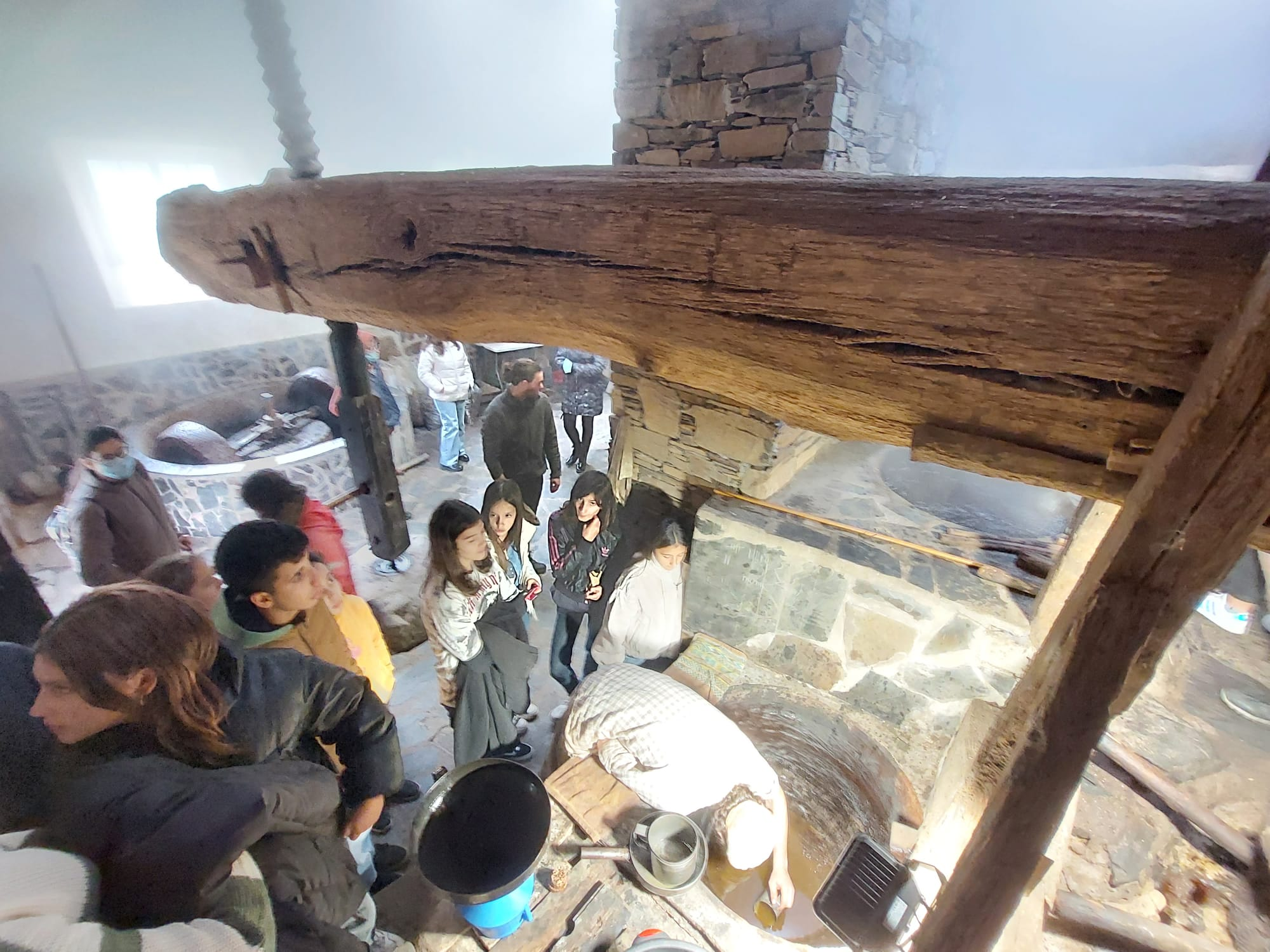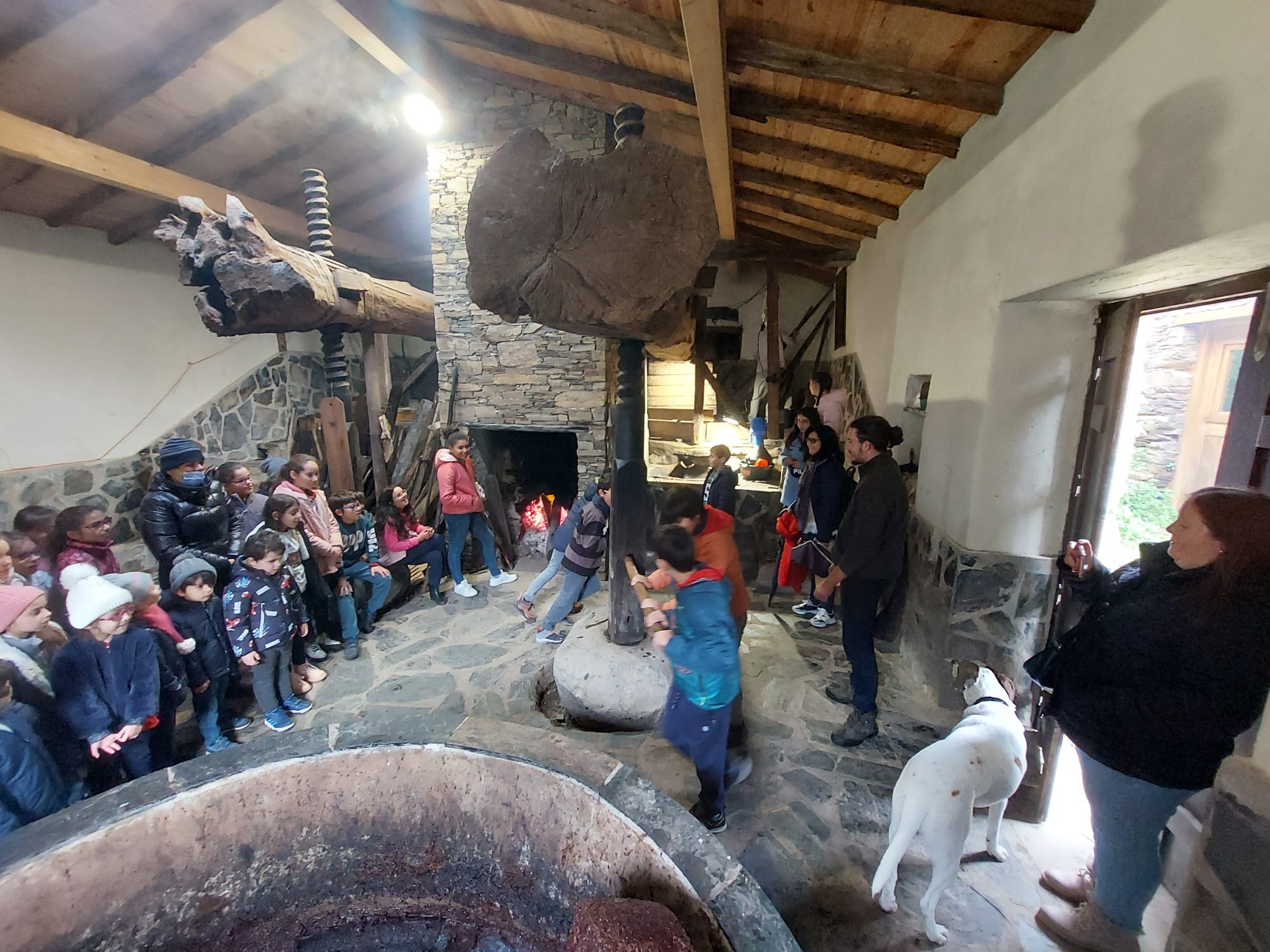 Deste modo, 107 alunos, entre os dias 05 e 06 de dezembro, puderam visitar o Lagar de Varas da Cabreira, datado de 1876, o qual se encontra sob gestão da Comissão Administrativa dos Lagares do Povo da Freguesia do Cadafaz, sendo um dos poucos, senão mesmo o único, lagar de varas ainda em funcionamento no país.