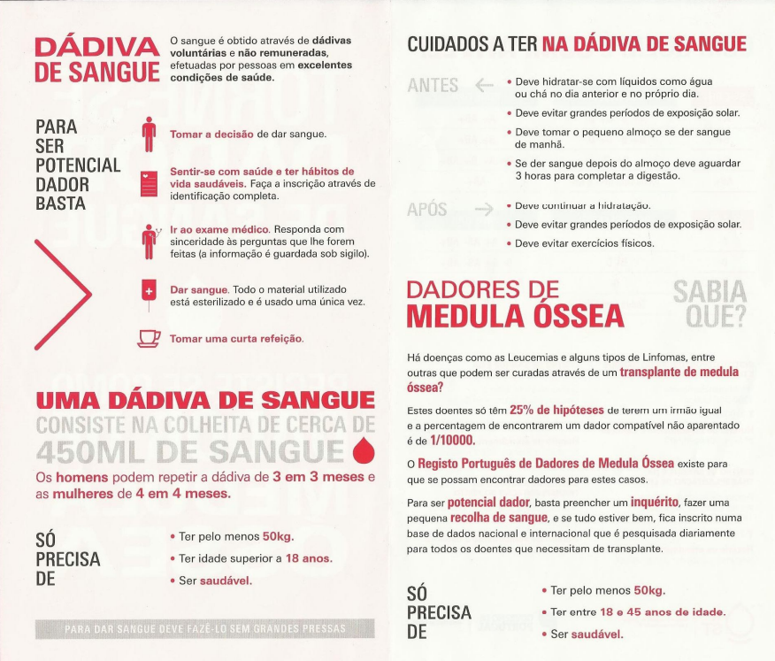 - Apelo à Dádiva de Sangue/Medula Óssea