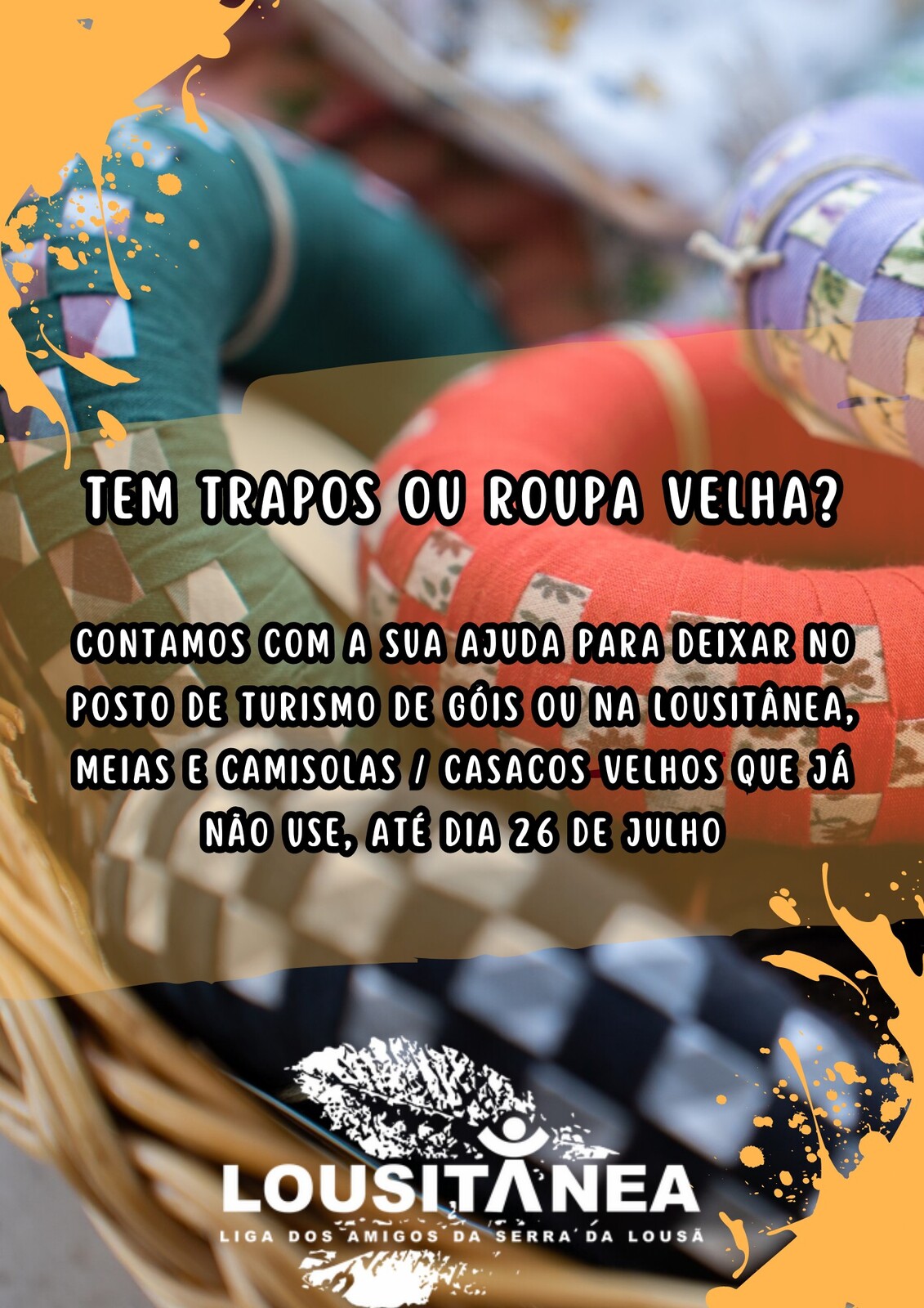 A Lousitânea irá realizar, no dia 30 de julho, no âmbito do #aigracultura, um ateliê de Rodilhas. Esta é uma atividade que pressupõe a reutilização de tecidos e/ou roupas antigas para a confeção de rodilhas, uma prática tradicional do nosso concelho.
