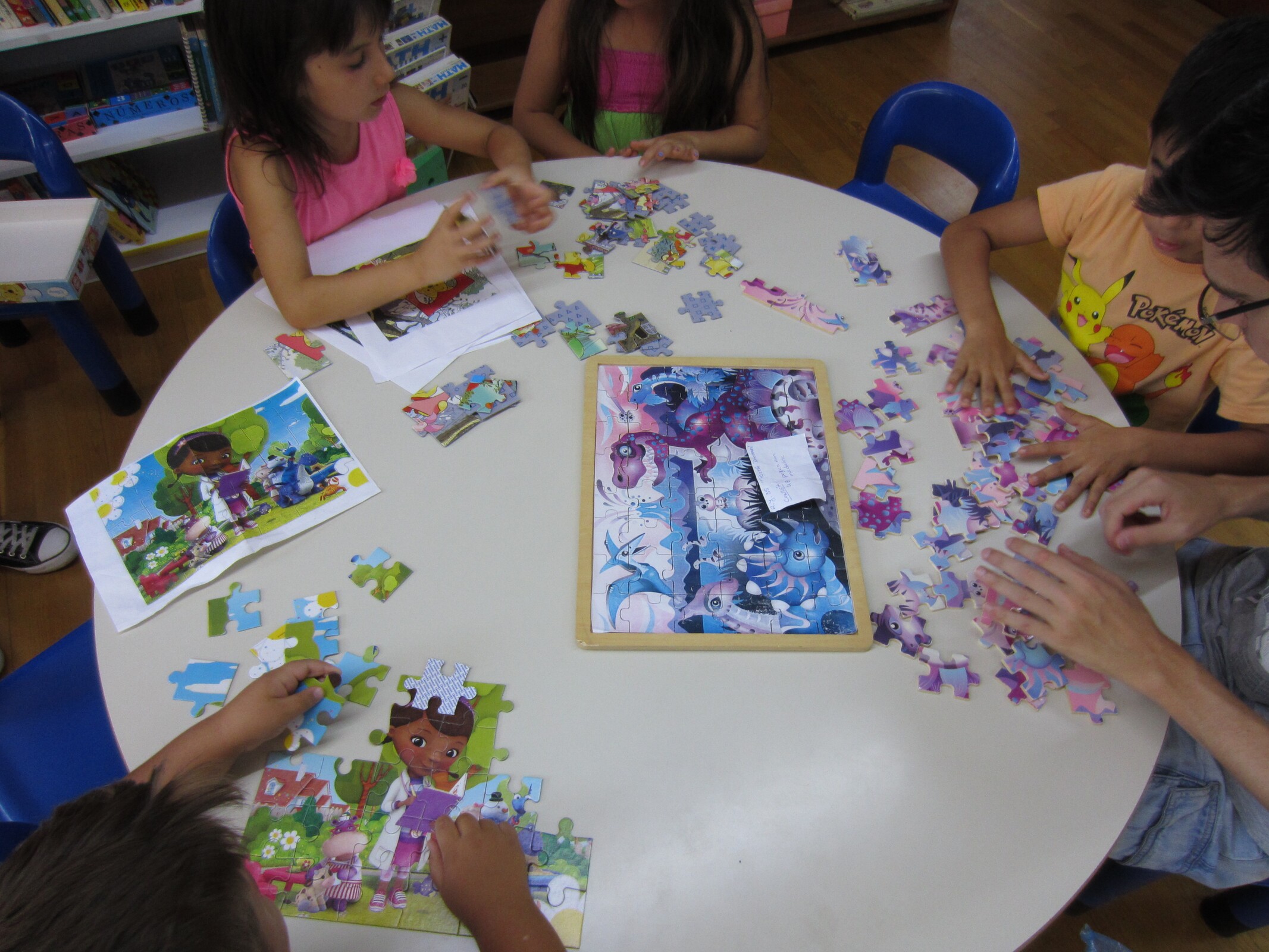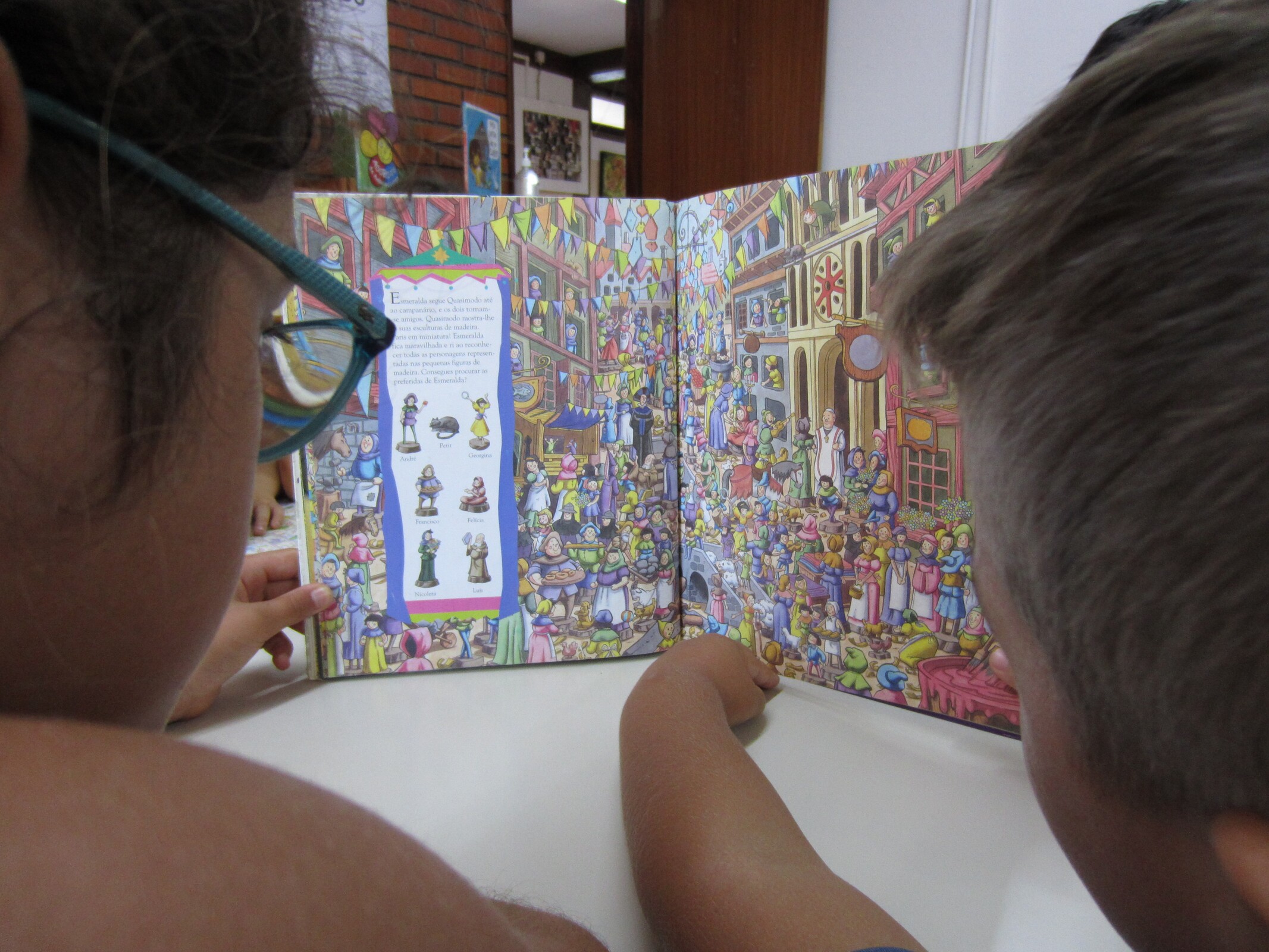 Esta dinâmica desenvolveu-se, em pequenos grupos, com o recurso a um conjunto de livros, nos quais os participantes tinham de encontrar as personagens / objetos indicados na história. Posteriormente, tiveram ainda uma dinâmica de construção de puzzles.