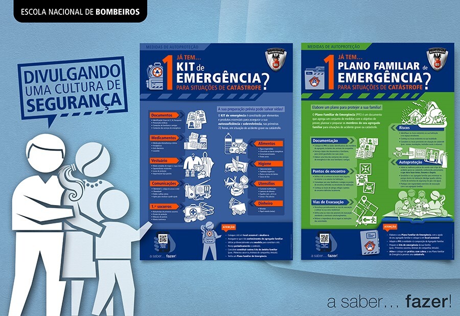 Para assinalar o Dia Internacional para a Redução do Risco de Catástrofes, que se comemora a 13 de outubro, a Escola Nacional de Bombeiros - Portugal divulga dois cartazes com medidas de autoproteção para minimizar os riscos em situações de acidente grave ou de catástrofe e que explicam como criar um Kit de Emergência e elaborar um Plano Familiar de Emergência.