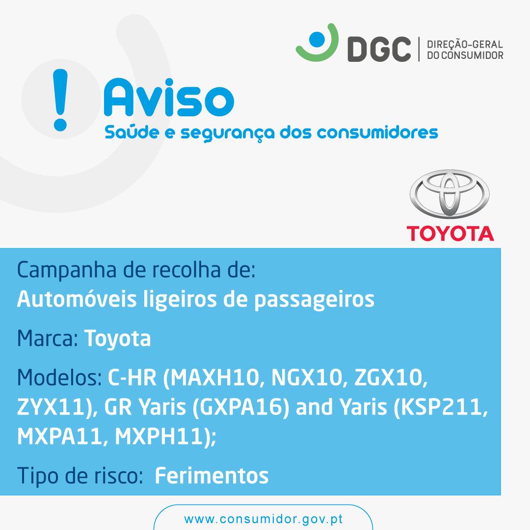 O Município de Góis, no âmbito da missão do Centro de Informação Autárquico ao Consumidor – CIAC, partilha o aviso da Direção-Geral do Consumidor quanto à campanha de Automóveis ligeiros de passageiros, marca Toyota.