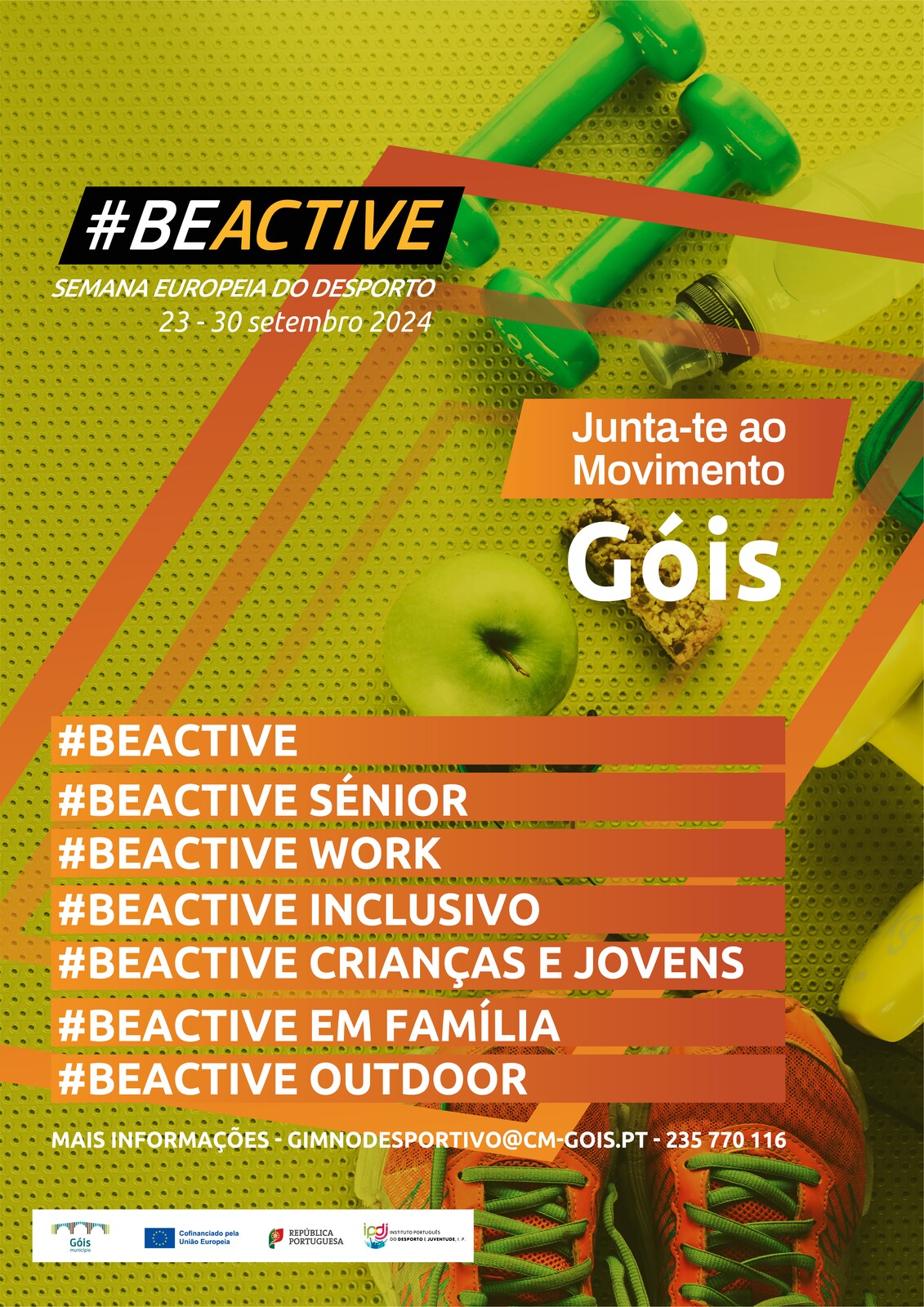 O Município de Góis associou-se, uma vez mais, às comemorações da Semana Europeia do Desporto, de 23 a 30 de setembro de 2024, através da dinamização de um vasto programa de atividades #BeActive.