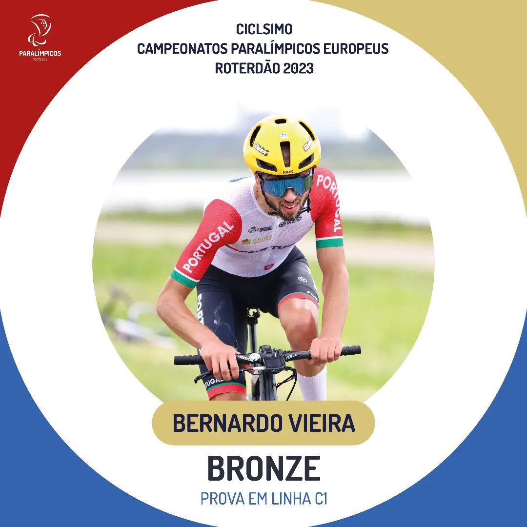 🥉 Bernardo Vieira conquista a sua segunda medalha nos Campeonatos Paralímpicos Europeus com o BRONZE na prova em linha C1 de ciclismo.