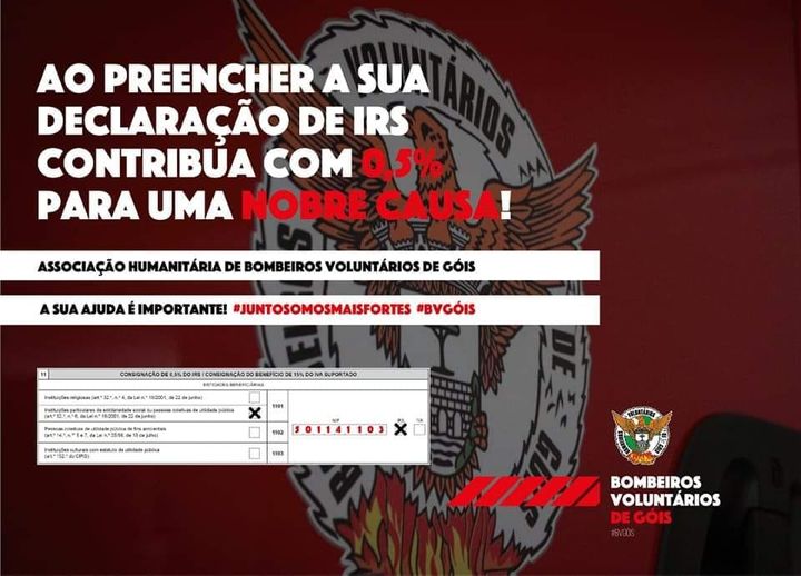 O Município de Góis associa-se aos Bombeiros Voluntários de Góis, na campanha de comunicação de consignação de IRS.