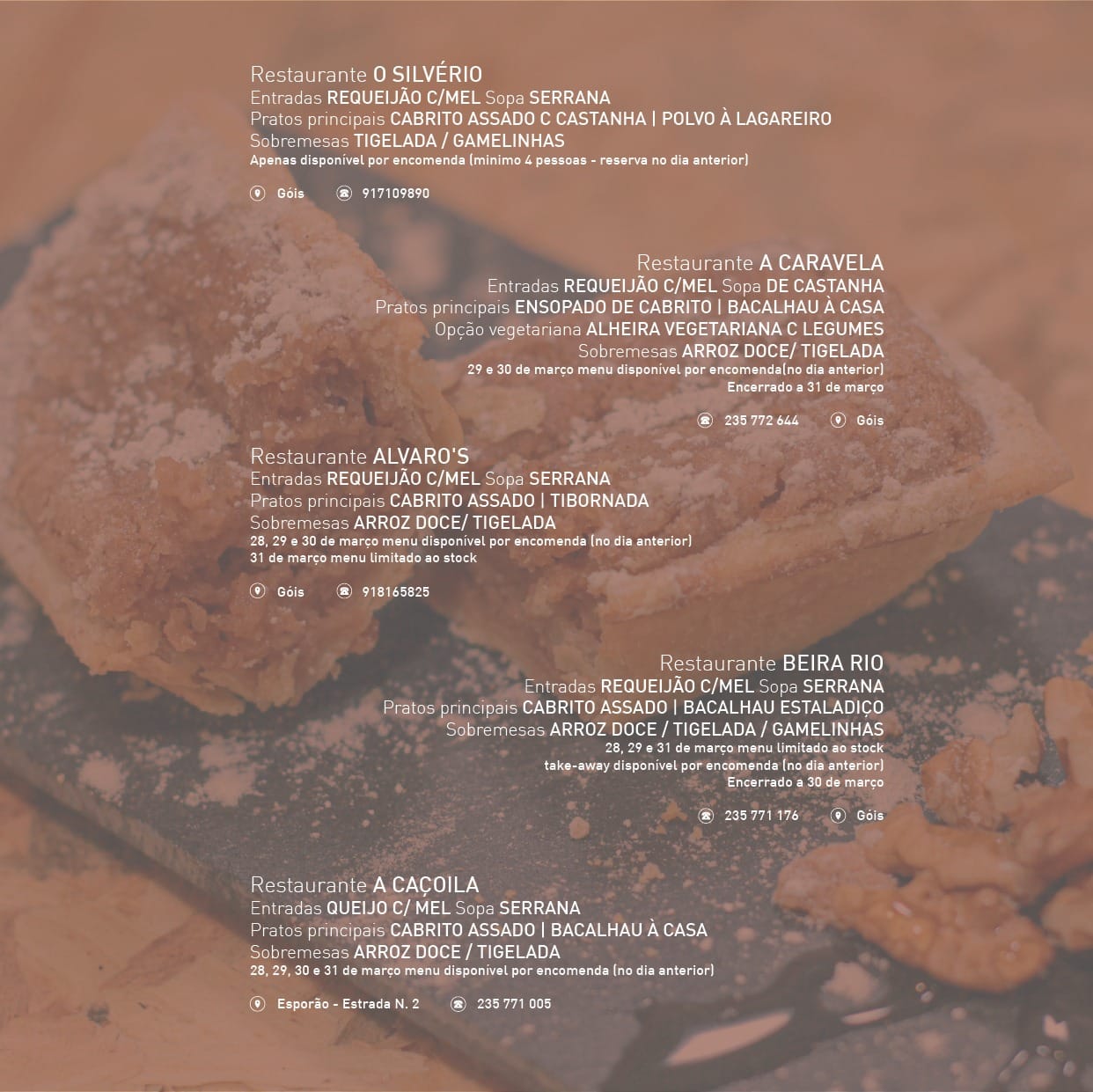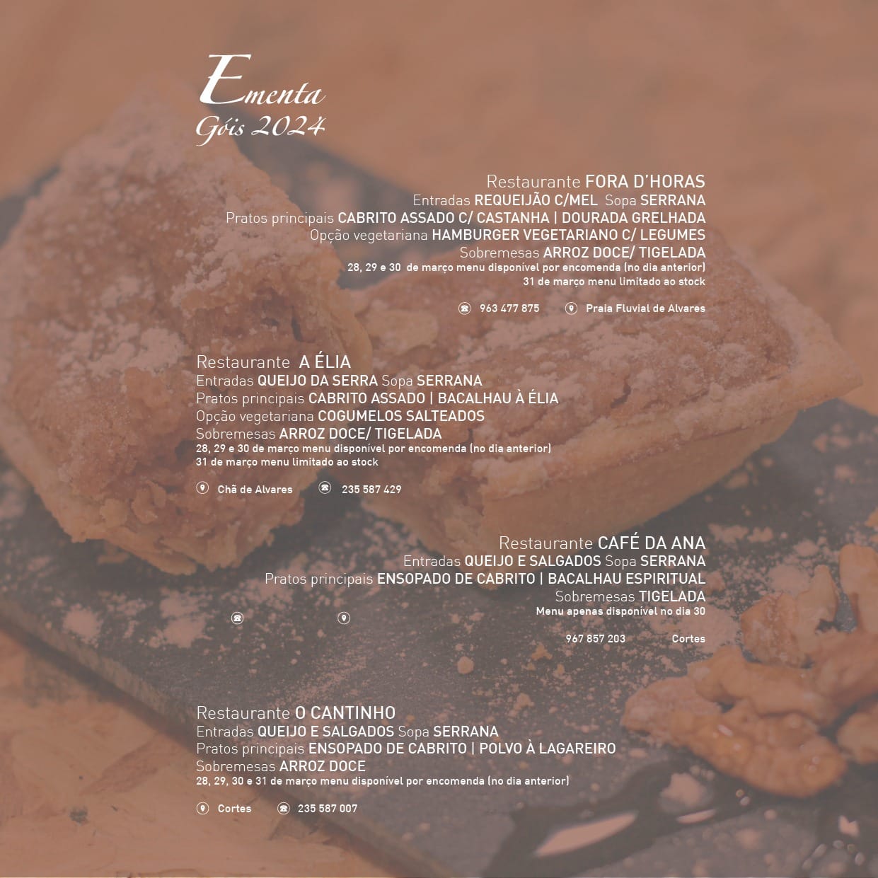 O Município de Góis apresenta, pelas 17h45, no stand da Comunidade Intermunicipal da Região de Coimbra [E03], no pavilhão 2, a iniciativa "Páscoa de Sabores", um convite à descoberta dos saberes e sabores do concelho.