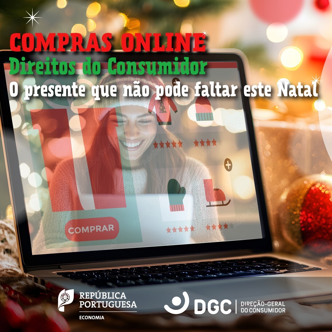 A Direção-Geral do Consumidor lançou a campanha «𝐂𝐨𝐦𝐩𝐫𝐚𝐬 𝐎𝐧𝐥𝐢𝐧𝐞: 𝐃𝐢𝐫𝐞𝐢𝐭𝐨𝐬 𝐝𝐨 𝐂𝐨𝐧𝐬𝐮𝐦𝐢𝐝𝐨𝐫 – 𝐎 𝐏𝐫𝐞𝐬𝐞𝐧𝐭𝐞 𝐪𝐮𝐞 𝐍ã𝐨 𝐏𝐨𝐝𝐞 𝐅𝐚𝐥𝐭𝐚𝐫 𝐄𝐬𝐭𝐞 𝐍𝐚𝐭𝐚𝐥», com o objetivo de garantir que os consumidores que fazem compras online conhecem os seus direitos e fazem escolhas informadas e seguras.