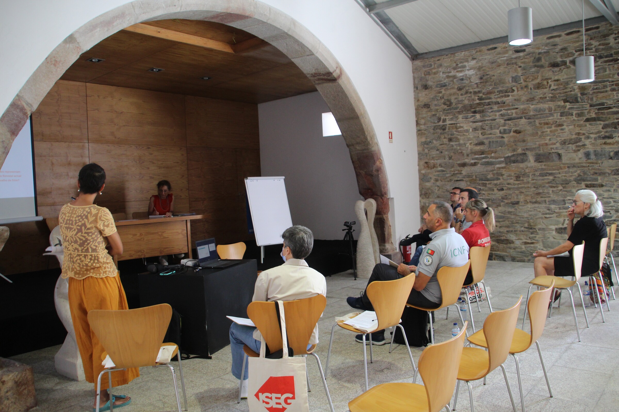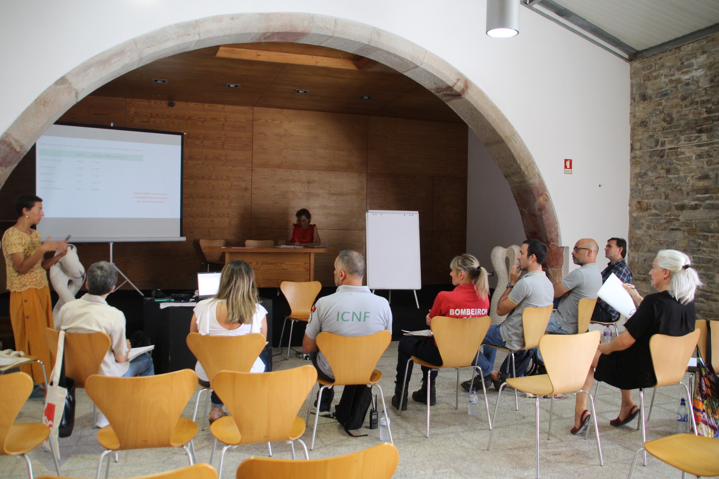 O auditório da Casa do Artista foi o palco de uma sessão interativa liderada pela equipa do Instituto Superior de Economia e Gestão da Universidade de Lisboa, que contou com a participação de entidades decisoras regionais e locais relevantes para o projeto piloto Coimbra do SGIFR - RCM 25/2021: Agência para a Gestão Integrada de Fogos Rurais (AGIF), Comunidade Intermunicipal da Região de Coimbra (CIM RC), Instituto da Conservação da Natureza e das Florestas (ICNF), Bombeiros Voluntários de Góis e Agrupamento de Escolas de Góis.