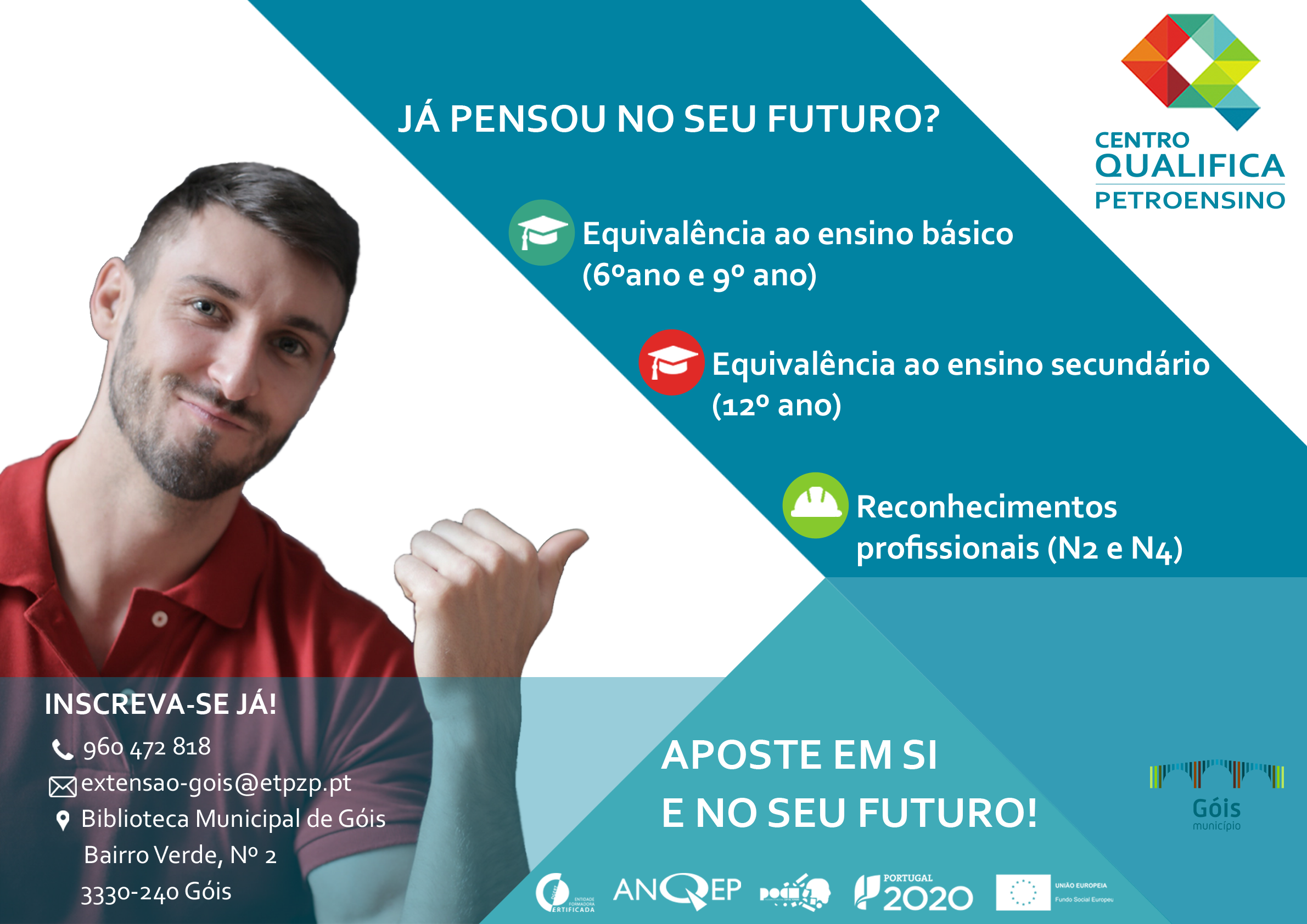 A pensar no seu futuro, a Extensão de Góis da Escola Tecnológica e Profissional da Zona do Pinhal tem abertas inscrições nos seguintes cursos: