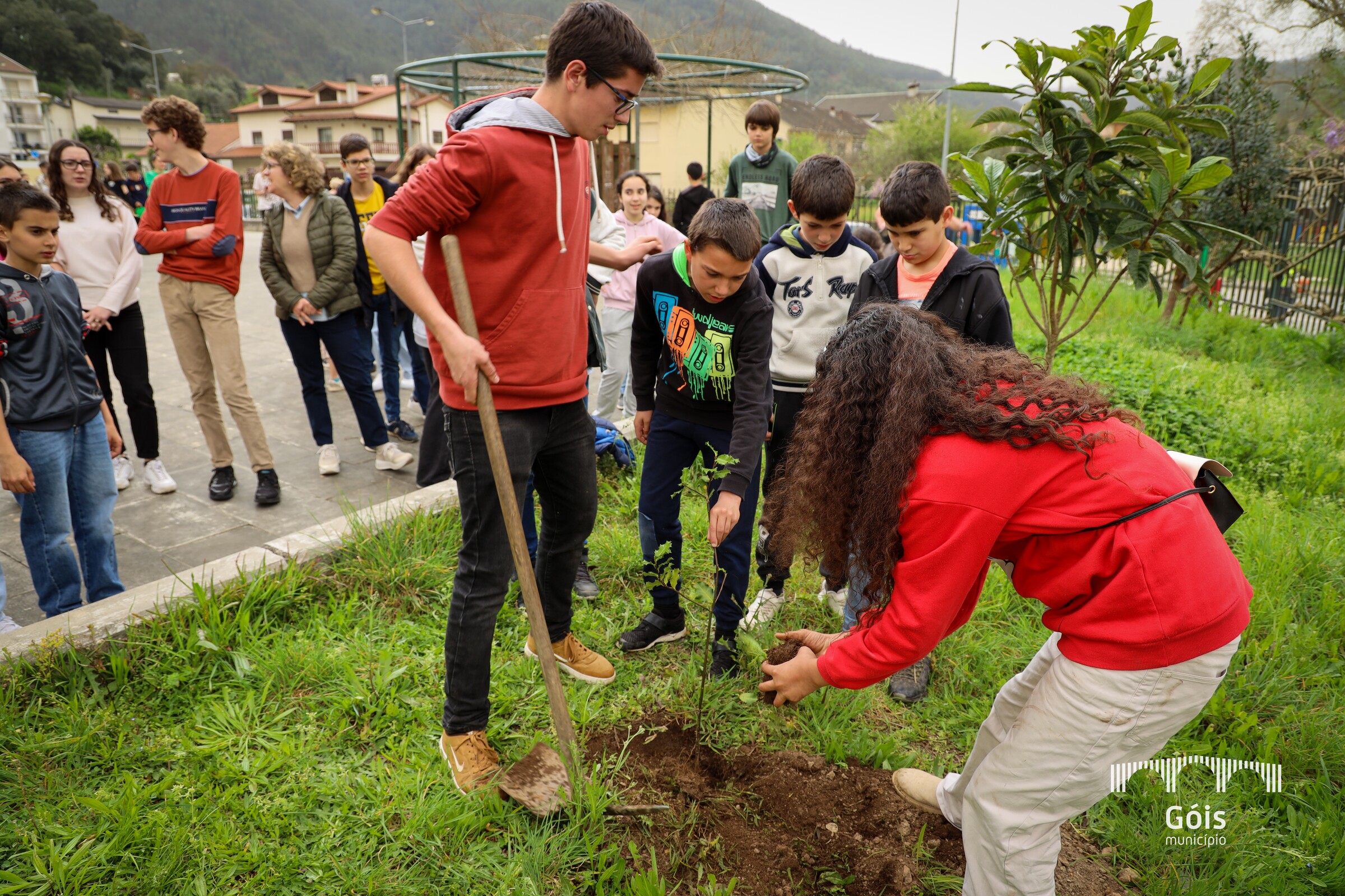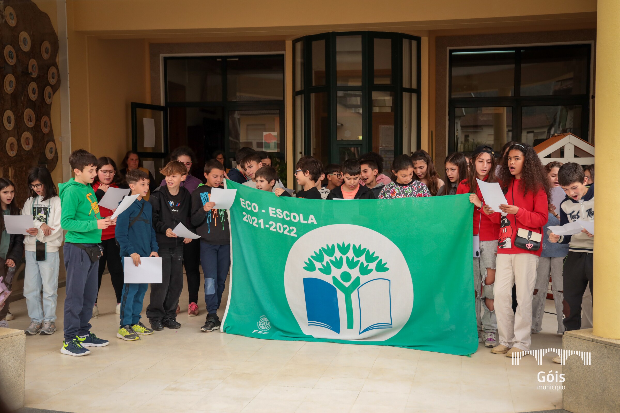 Realizou-se, hoje, a cerimónia do Hastear da Bandeira Verde do Eco-Escolas 2023, promovida pelo Agrupamento de Escolas de Góis, na sede do Agrupamento, com a participação de todos os alunos, seguindo-se a iniciativa "Plantar Espécies Autóctones (azevinho)", dentro do recinto escolar.