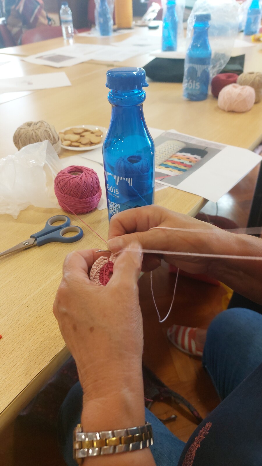 Na sessão de ontem, as participantes foram desafiadas a criar um acessório/porta-garrafas, em crochet, para transportar a garrafa do Município. Nesta iniciativa, para além dos desafios propostos, houve momentos de partilha de projetos e pontos, onde as participantes tricotadeiras/crocheteiras/bordadeiras tiveram ainda oportunidade para “tirar” dúvidas.
