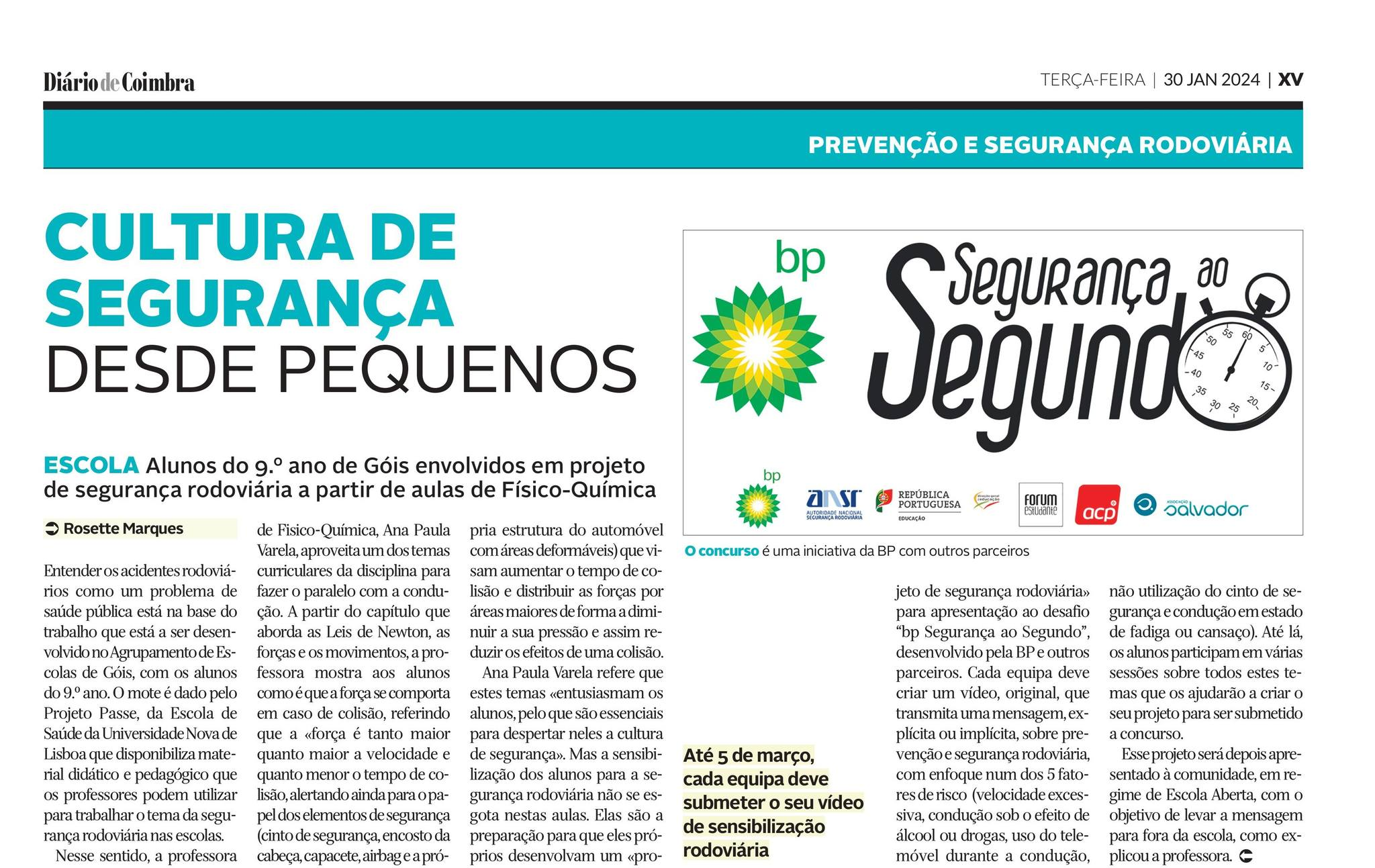 Os alunos do 9.º ano do Agrupamento de Escolas de Góis estão envolvidos em projeto de segurança rodoviária a partir de aulas de Físico-Química.