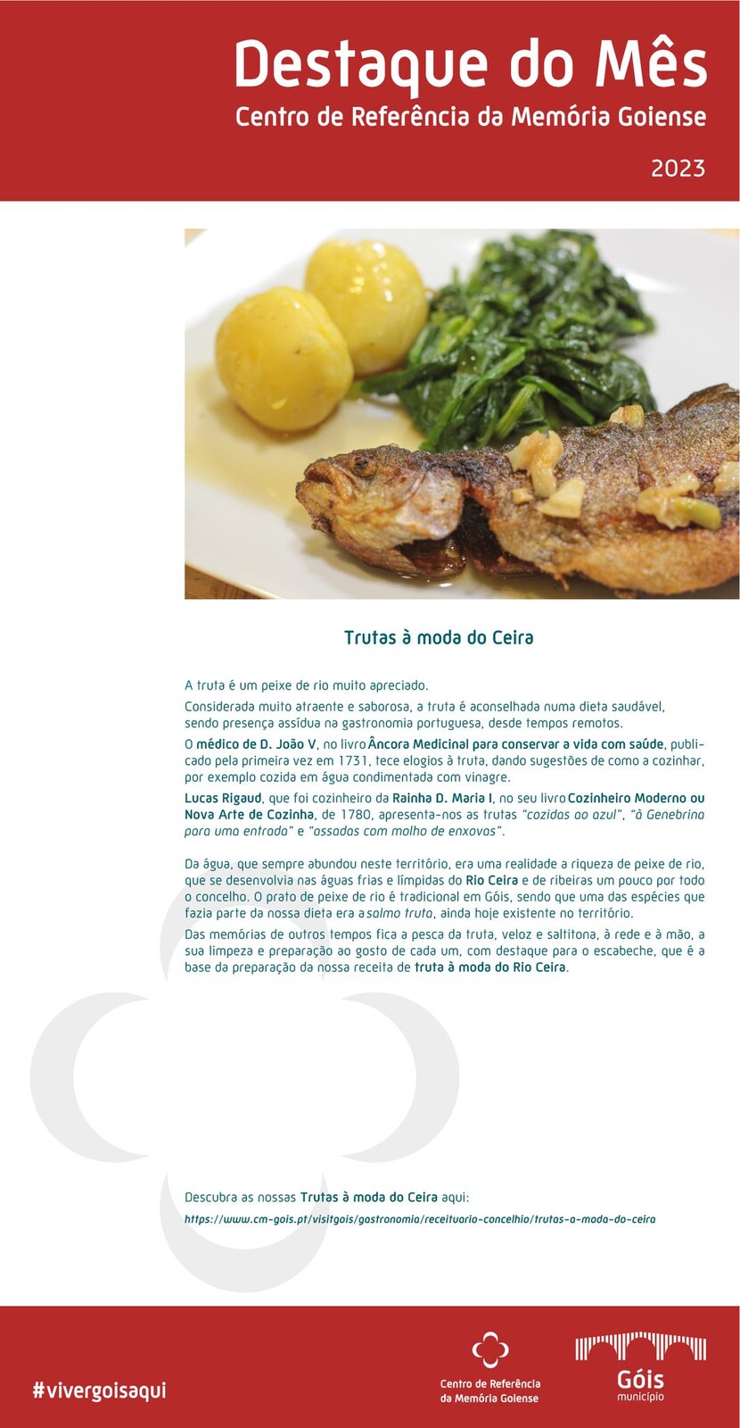 #vivergóisaqui #centrodereferênciadamemóriagoiense #municípiodegóis #visitgois #turismocentrodeportugal #CAPITALDOCEIRA #trutaàmodadoceira #truta #RioCeira #gastronomia