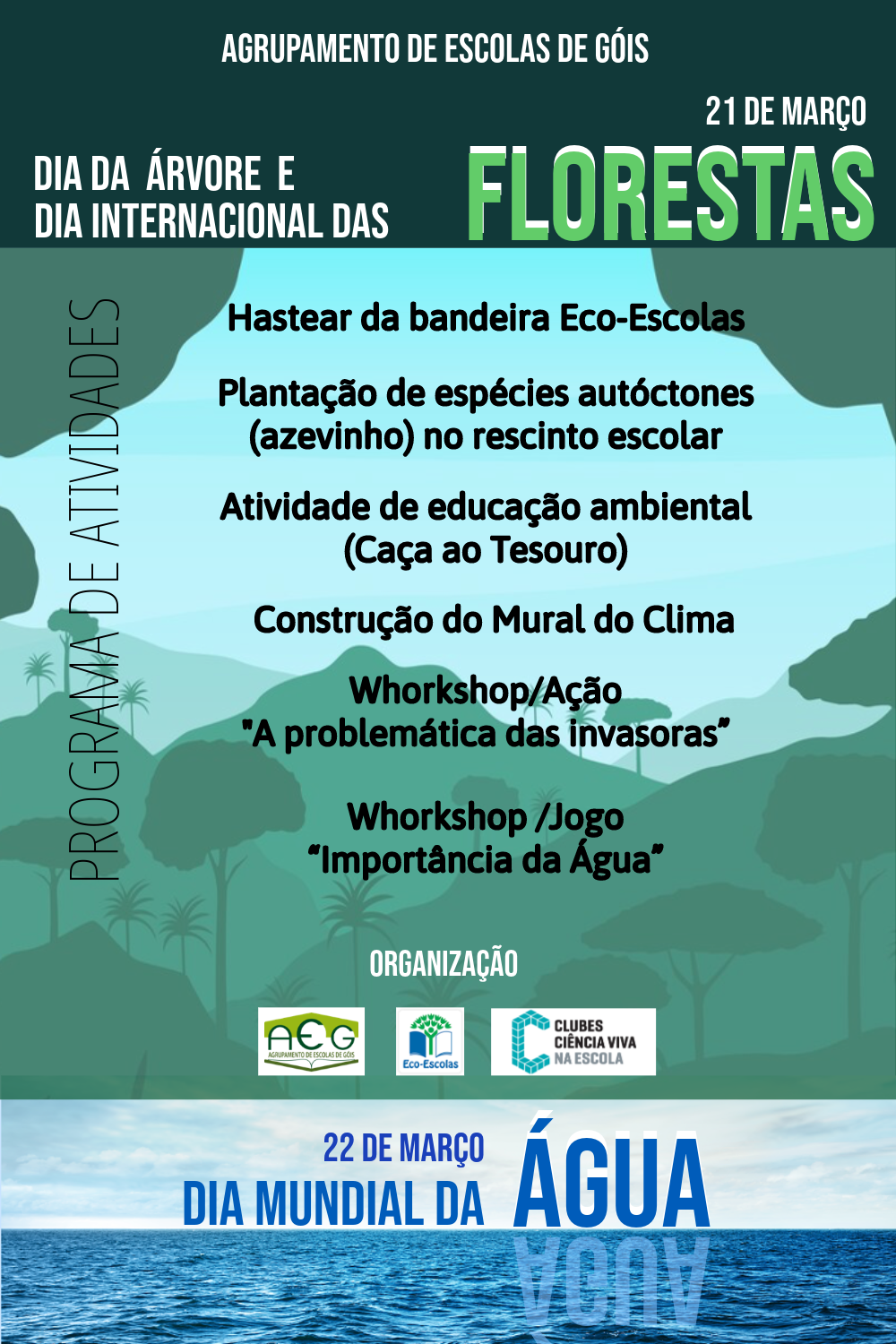 O Município de Góis assinala o Dia Mundial da Árvore e o Dia Internacional das Florestas, em colaboração com o Agrupamento de Escolas de Góis, através da cerimónia do Hastear da Bandeira Verde do Eco-Escolas 2024 que irá decorrer, amanhã, na sede do Agrupamento.