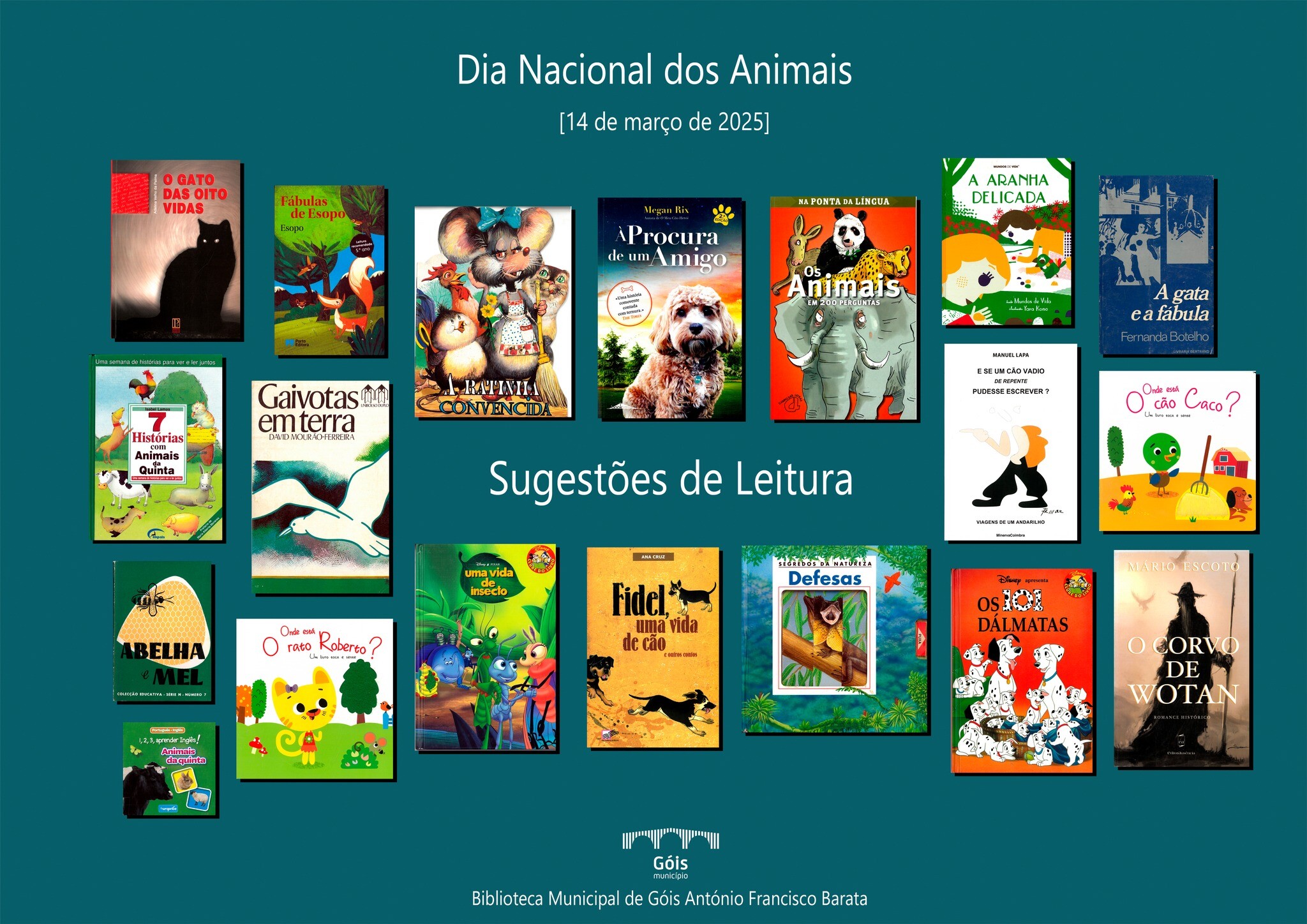 O Município de Góis assinala, hoje, o Dia Nacional dos Animais, através de algumas sugestões de leitura da Biblioteca Municipal de Góis António Francisco Barata, para ler sozinho, em voz alta, em família ou para o seu companheiro de quatro patas.