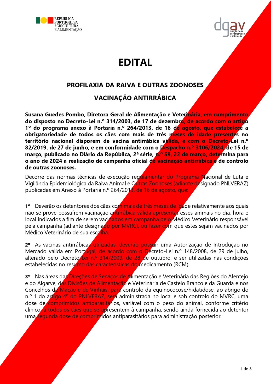 - Edital da Campanha de Vacinação Antirrábica e Identificação Eletrónica 2024