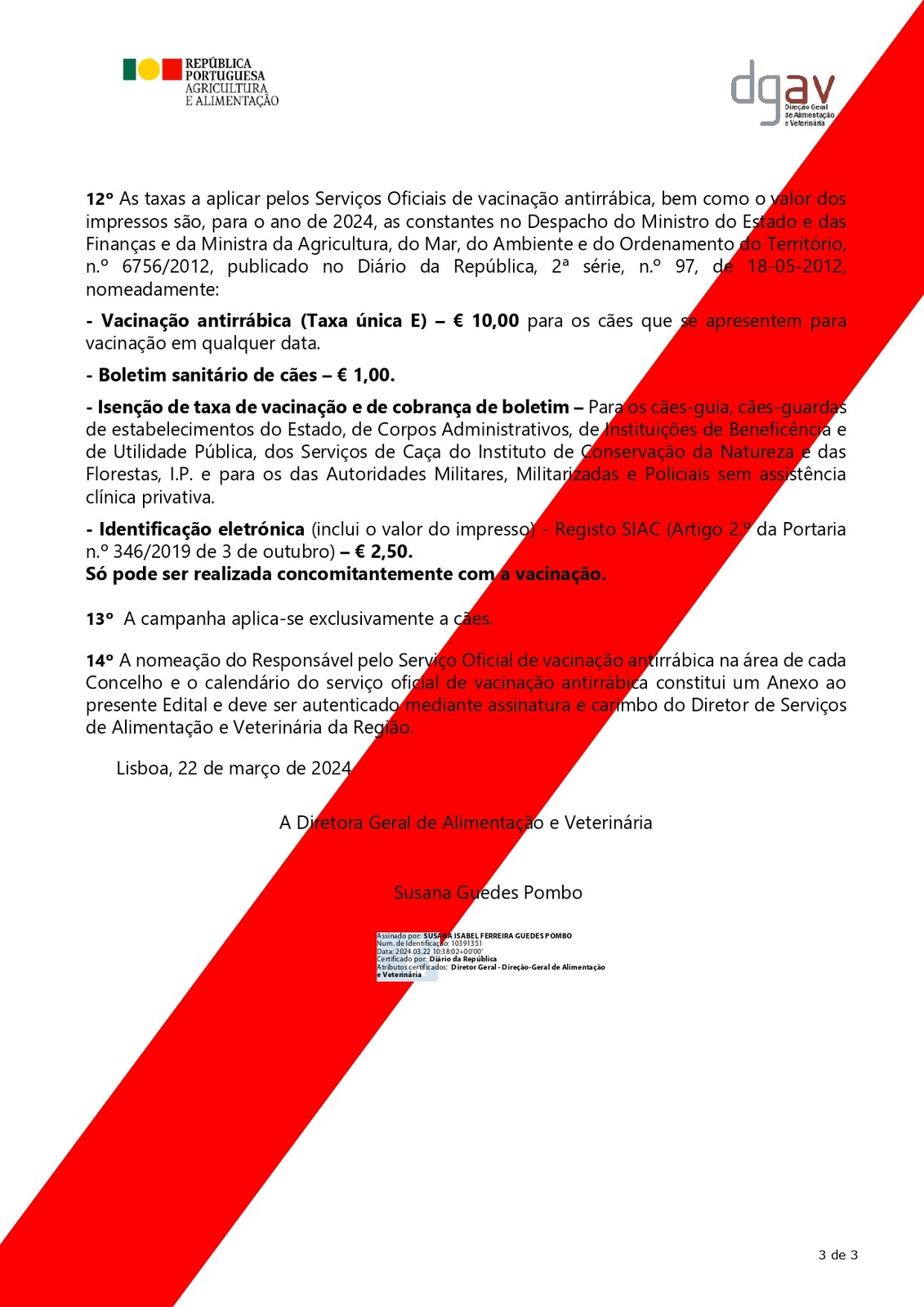 Edital da Campanha de Vacinação Antirrábica e Identificação Eletrónica 2024