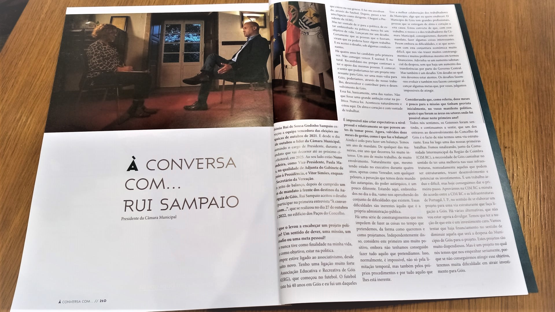 Em jeito de balanço, depois de cumprido um ano de mandato à frente dos destinos da Autarquia de Góis, Rui Sampaio aceitou o desafio de participar na primeira entrevista "À conversa com..", que se realizou no dia 27 de outubro de 2022, no edifício dos Paços do Concelho.