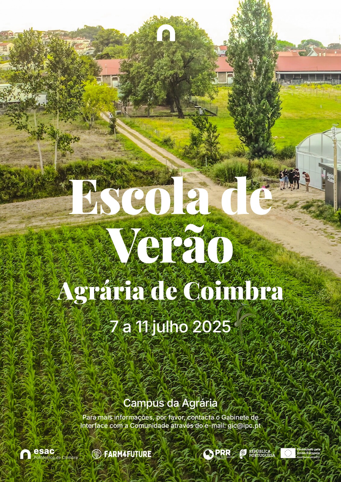 A Escola Superior Agrária de Coimbra, em parceria com o Gabinete de Interface com a Comunidade do Politécnico de Coimbra (GIC-IPC), e no âmbito do projeto 𝐅𝐀𝐑𝐌𝟒𝐅𝐔𝐓𝐔𝐑𝐄, irá dinamizar 3 edições da Escola de Verão da Agrária de Coimbra durante o mês de julho: 𝐝𝐞 𝟕 𝐚 𝟏𝟏, 𝐝𝐞 𝟏𝟒 𝐚 𝟏𝟖 𝐞 𝐝𝐞 𝟐𝟏 𝐚 𝟐𝟓, 𝐧𝐨 𝐂𝐚𝐦𝐩𝐮𝐬 𝐝𝐚 𝐀𝐠𝐫á𝐫𝐢𝐚.