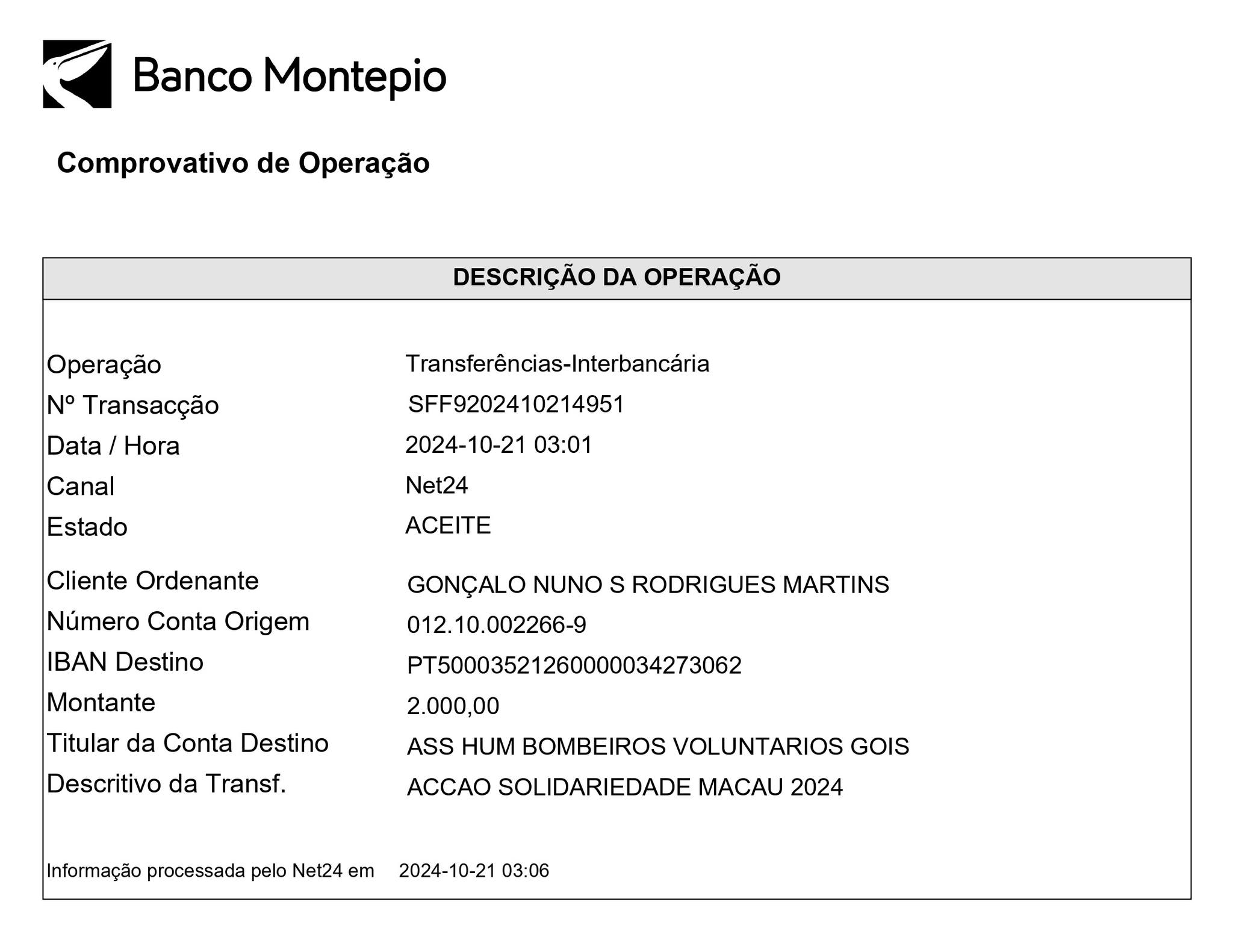 Através deste gesto de solidariedade, Gonçalo Pinheiro consegui atingir os 2.000€, que tinha inicialmente proposto, com a ajuda e contribuição do Município de Góis.