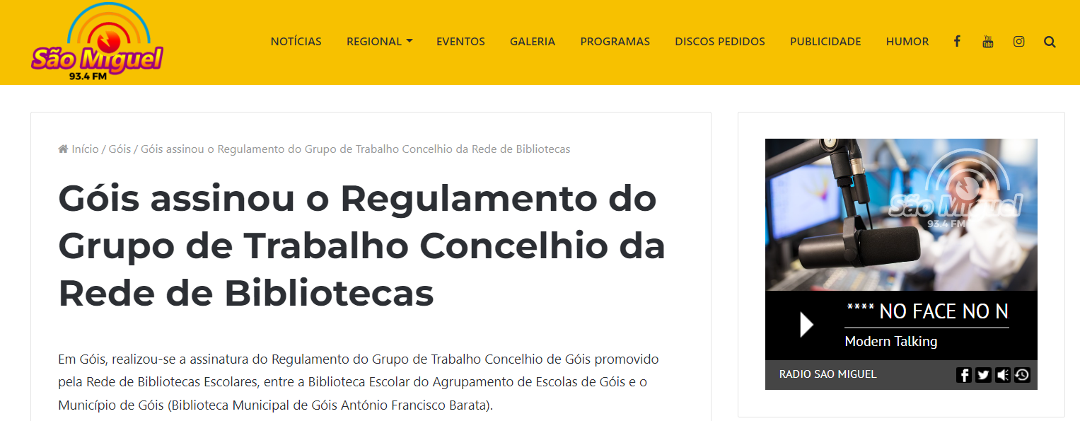 O Município de Góis assinou o Regulamento do Grupo de Trabalho Concelhio promovido pela Rede de Bibliotecas Escolares, segundo a notícia da Rádio São Miguel, aqui: