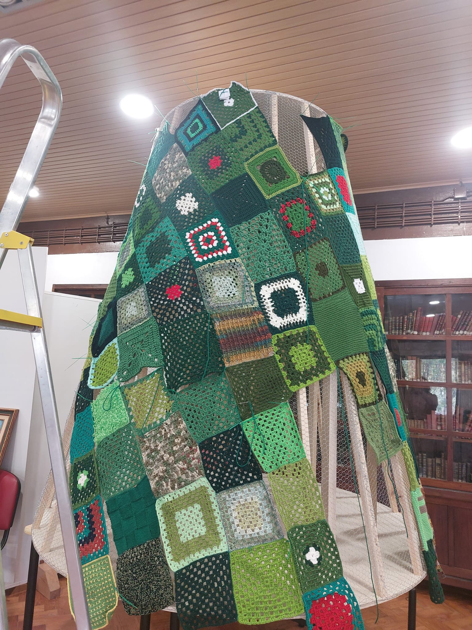 Góis, em comunidade, prepara a maior Árvore de Natal Comunitária 'Quadrados Solidários', de tricô e croché, da região Centro