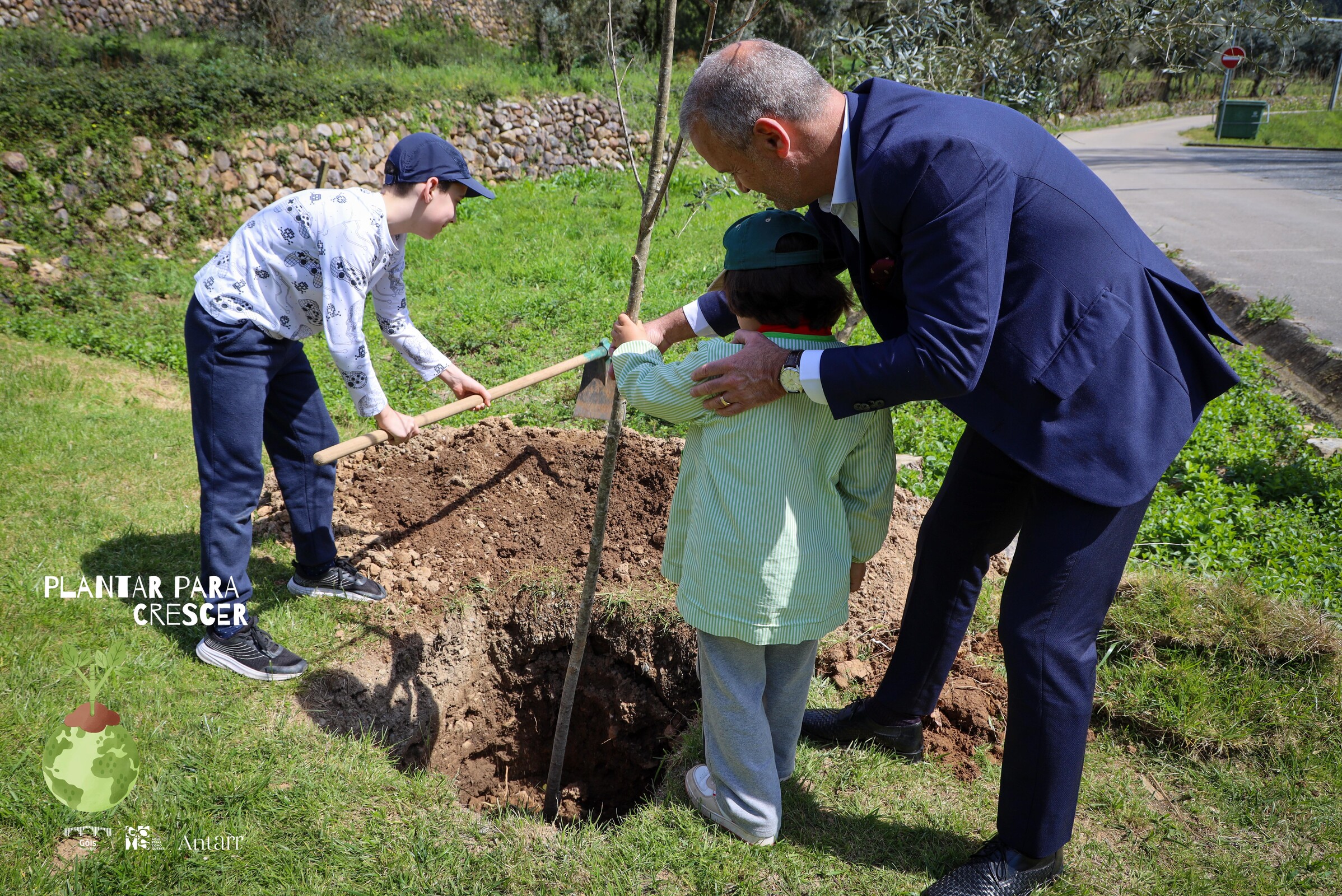 No seguimento das comemorações do 𝐃𝐢𝐚 𝐌𝐮𝐧𝐝𝐢𝐚𝐥 𝐝𝐚 Á𝐫𝐯𝐨𝐫𝐞 𝐞 𝐝𝐨 𝐃𝐢𝐚 𝐈𝐧𝐭𝐞𝐫𝐧𝐚𝐜𝐢𝐨𝐧𝐚𝐥 𝐝𝐚𝐬 𝐅𝐥𝐨𝐫𝐞𝐬𝐭𝐚𝐬, o Município de Góis dinamizou, esta tarde, em parceria com a ANTARR SUSTAINABLE PRODUCTIVE FOREST SA., no âmbito das Atividades de Educação Ambiental da ABAAE, a iniciativa “𝐏𝐥𝐚𝐧𝐭𝐚𝐫 𝐩𝐚𝐫𝐚 𝐂𝐫𝐞𝐬𝐜𝐞𝐫”, através da plantação de espécies autóctones, com os alunos do Agrupamento de Escolas de Góis.