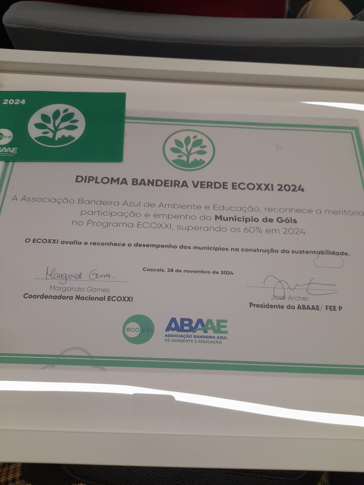 O Município de Góis recebeu ainda um diploma que reconhece a participação e o respetivo empenho no programa Eco XXI em 2024. Face a este resultado, o Presidente da Câmara Municipal de Góis, Rui Sampaio, congratula-se pela distinção concedida pela ABAAE, nomeadamente pelo trabalho desenvolvido, pelos vários serviços da autarquia.