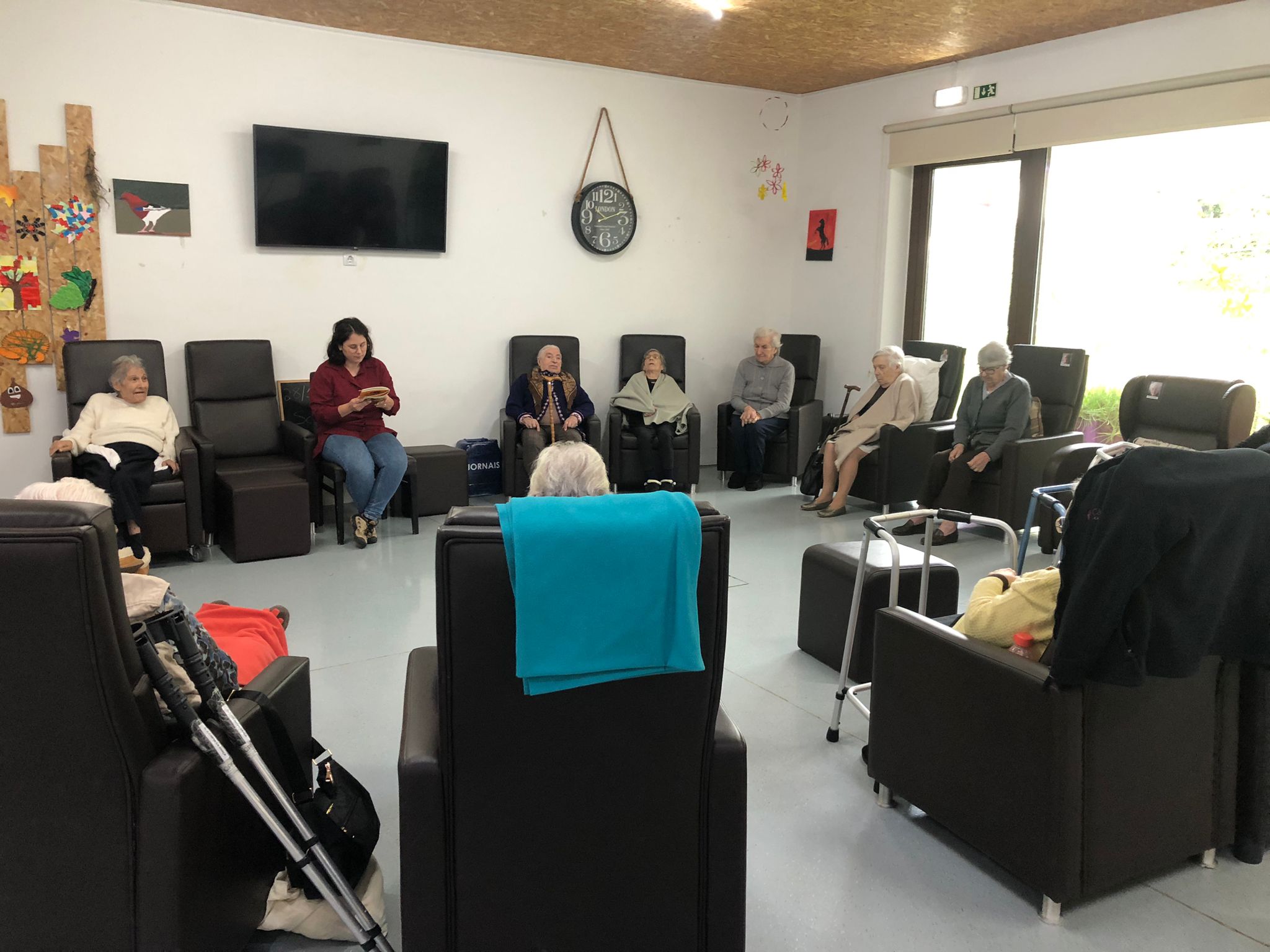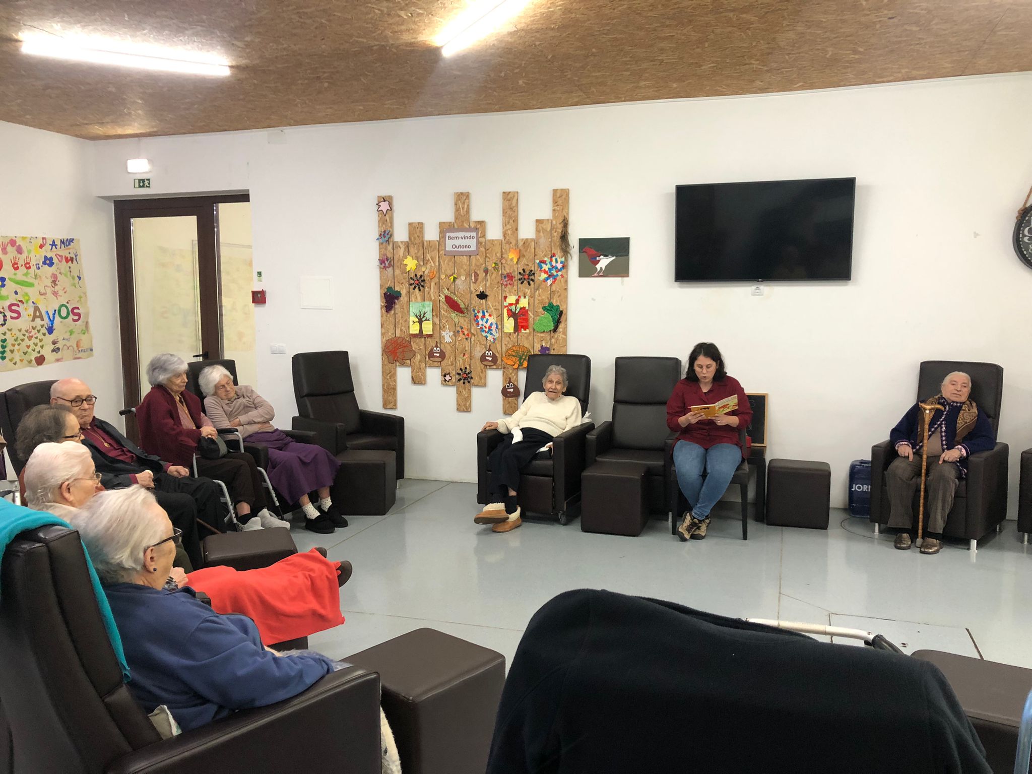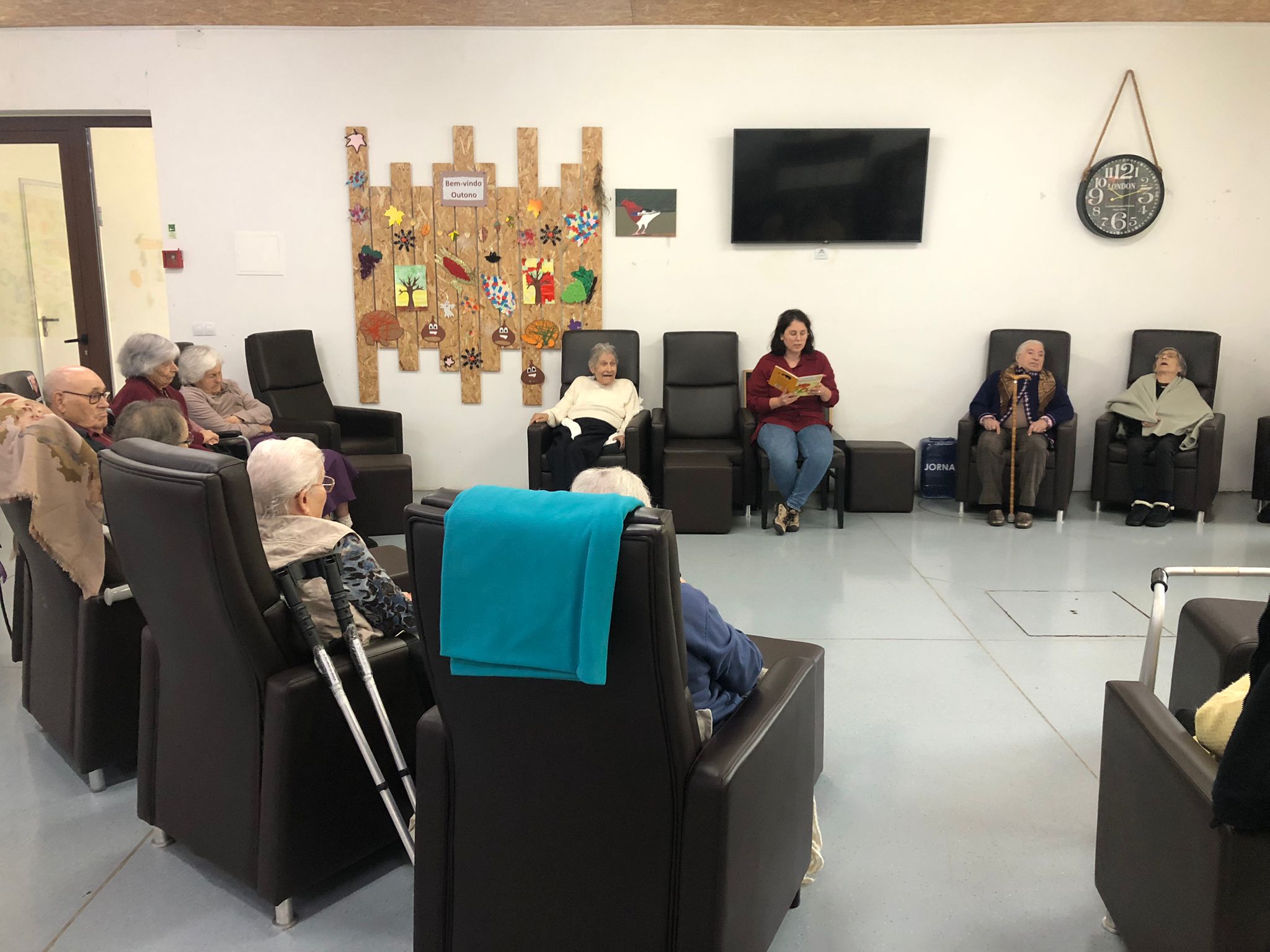 👉 O livro selecionado para dinamizar a atividade intitula-se "Um ano inteiro - Almanaque da Natureza", sendo que, o livro de leitura destinado aos seniores intitula-se “Era uma vez… na natureza”, com o conto “bichos agricultores”, onde foi possível abrir debate sobre a agricultura biológica e sustentável, assim como sobre a experiência pessoal de cada participante com as suas hortas particulares.