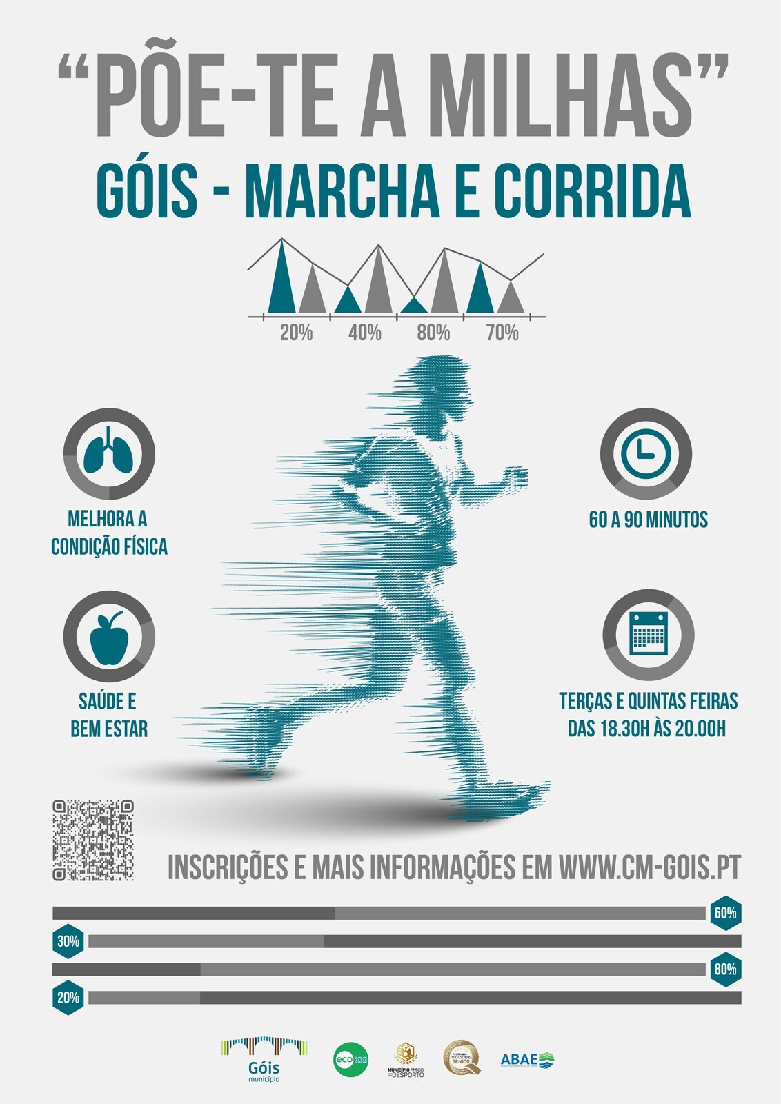 O Município de Góis está a promover, uma vez mais, o programa “Põe-te a Milhas” – Marcha e Corrida, que consiste num treino de corrida e/ou caminhada regular, aberto a todos os participantes, independentemente do seu nível ou condição física. A atividade desenvolver-se-á em percursos distintos e previamente estabelecidos, com o propósito de ir ao encontro da condição física de cada participante.