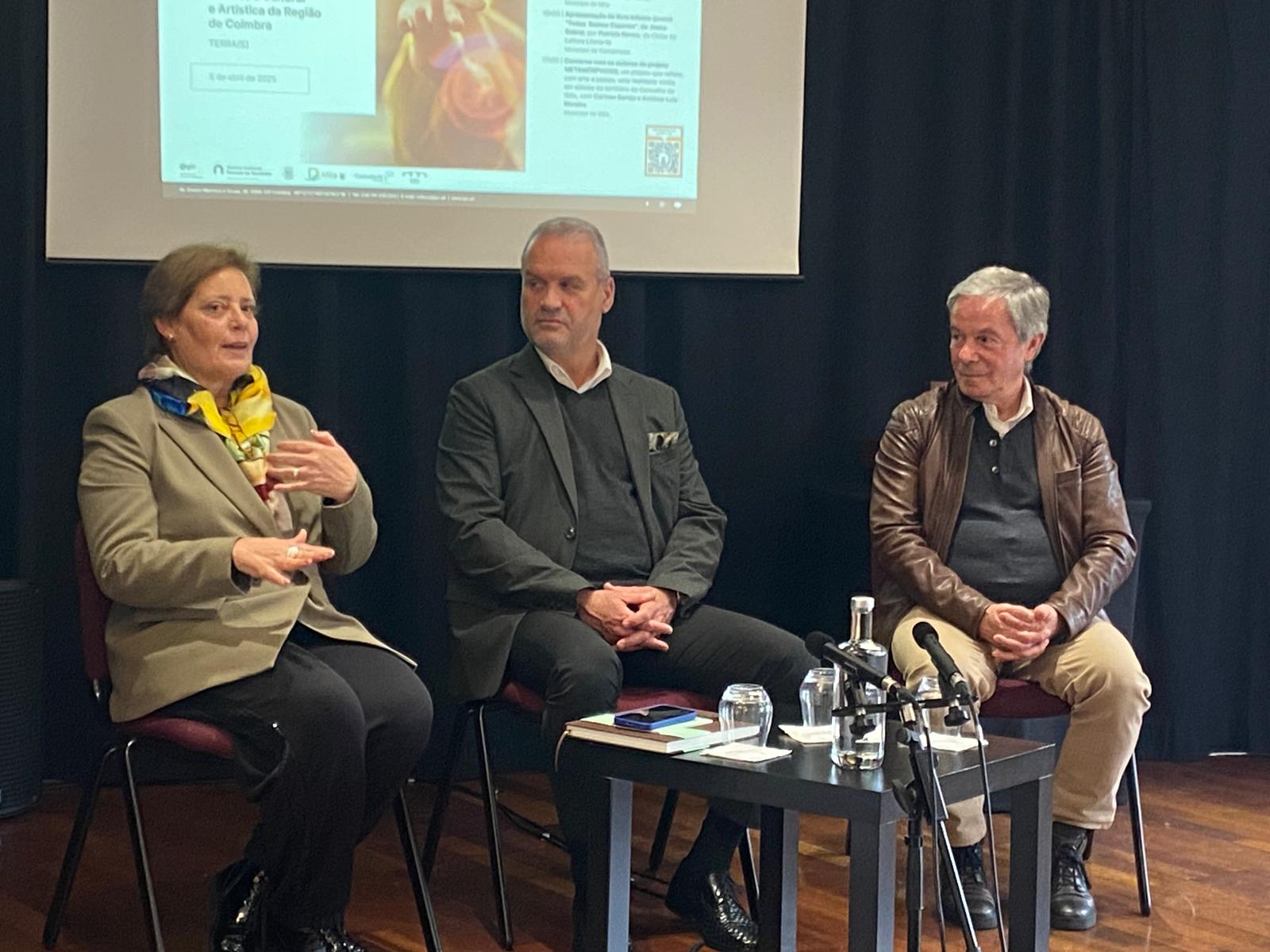 O Presidente da Câmara Municipal de Góis, Rui Sampaio, participou, este fim de semana, na programação da 𝐃𝐄𝐍𝐒𝐎 - 𝐈𝐈𝐈 𝐌𝐨𝐬𝐭𝐫𝐚 𝐂𝐮𝐥𝐭𝐮𝐫𝐚𝐥 𝐞 𝐀𝐫𝐭í𝐬𝐭𝐢𝐜𝐚 𝐝𝐚 𝐑𝐞𝐠𝐢ã𝐨 𝐝𝐞 𝐂𝐨𝐢𝐦𝐛𝐫𝐚, no Centro Cultural Penedo da Saudade, em conjunto com os autores do projeto 𝐌𝐄𝐓𝐀𝐌𝐎𝐑𝐏𝐇𝐎𝐒𝐈𝐒, Carmen Serejo e António Luís Moreira, numa conversa sobre o trabalho desenvolvido nas Aldeias do Xisto de Góis, seguida da visualização do documentário.