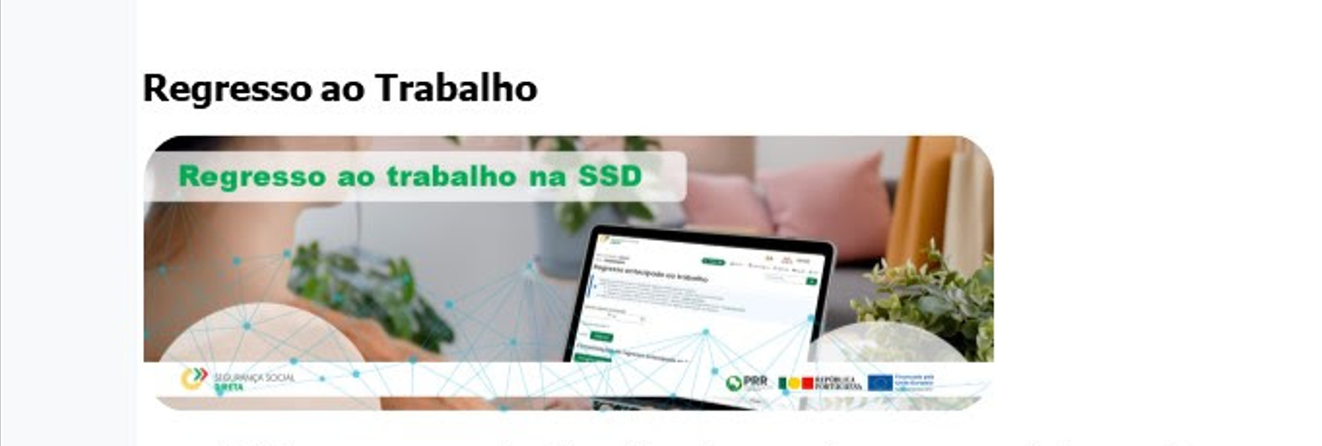 Se está de baixa mas tem indicação médica de que pode retomar o trabalho quando se encontrar apto, já pode comunicar o regresso do trabalho através da Segurança Social Direta. Basta ir ao menu Emprego - Gestão de Regresso Antecipado ao Trabalho.