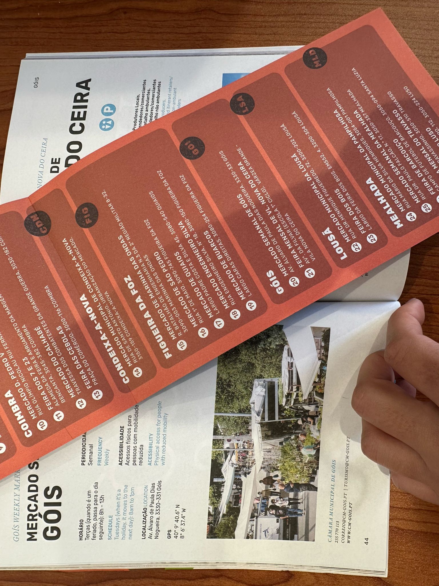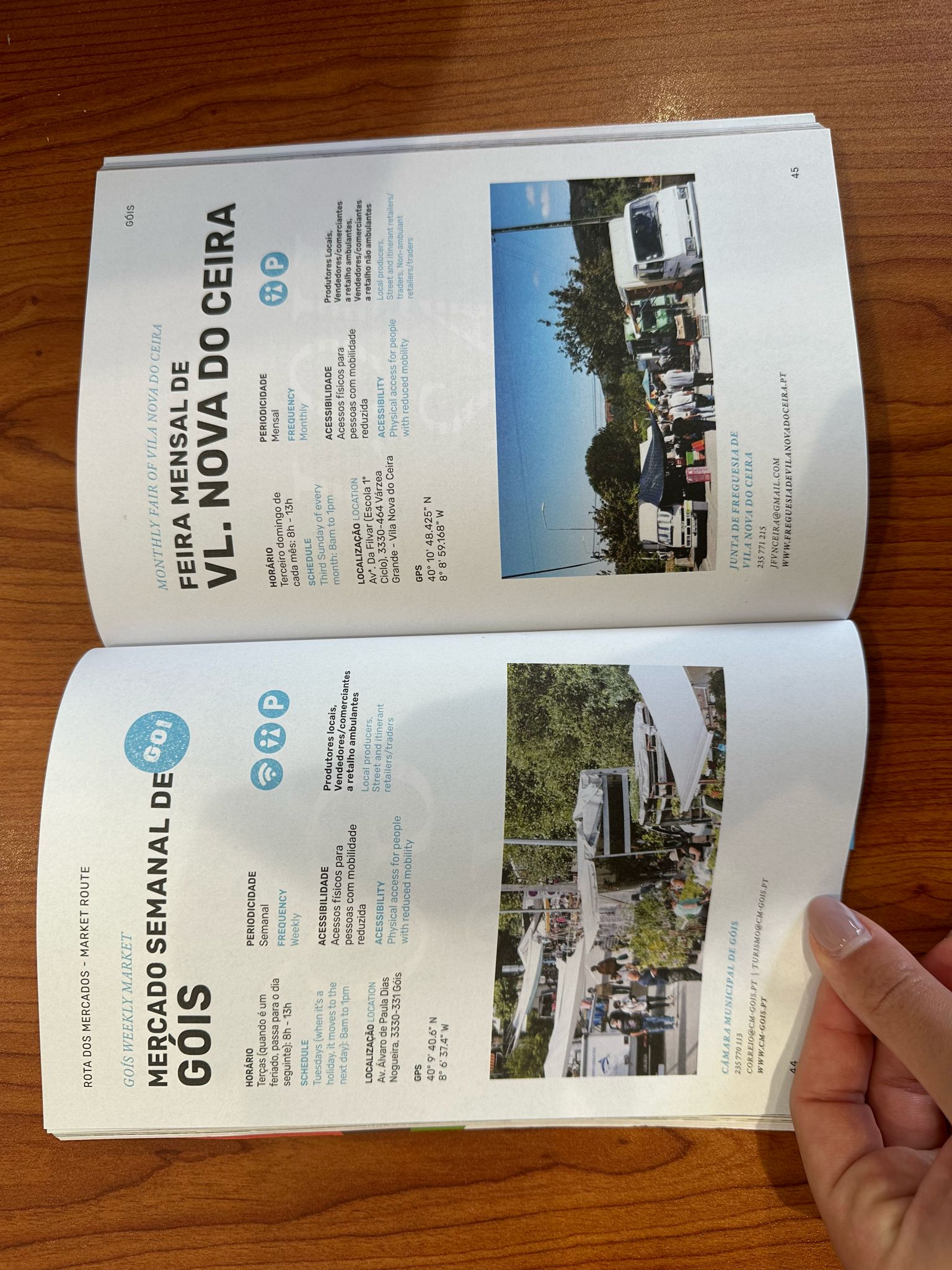A Rota dos Mercados conta com 61 mercados e feiras dos 19 Municípios da Região de Coimbra, sendo que o Município de Góis está presente, neste roteiro, com o Mercado Semanal de Góis, que decorre todas as terças-feiras, das 08h00 às 13h00, e a Feira Mensal de Vila Nova do Ceira, que decorre no terceiro domingo de cada mês, das 08h às 13h00.