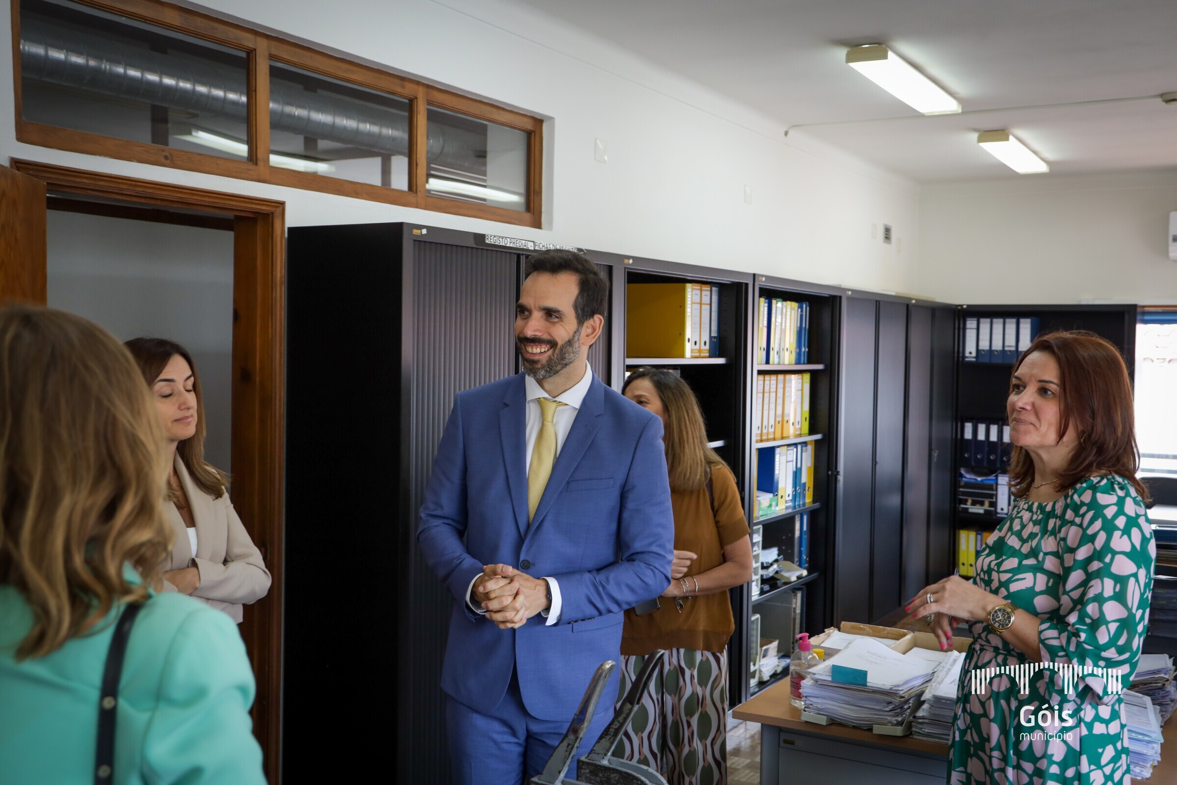 A visita teve início na Conservatória do Registo Civil e Predial de Góis, local onde a comitiva foi recebida pelo Vice-Presidente, Nuno Bandeira, pela Adjunta do Gabinete de Apoio à Presidência, Paula Matos, pela conservadora da Pampilhosa da Serra, Sónia Salvado, e pela Oficial, Margarida Costa. O contacto da comitiva com a funcionária permitiu entender as necessidades do serviço, nomeadamente, a necessidade de colocar mais oficiais de Registos, em Góis. Estando a decorrer um concurso externo do Instituto dos Registos e do Notariado, IP, que, segundo o Sr. Secretário de Estado, estará resolvido até ao final do ano, e um concurso para assistente técnico a desenvolver funções neste espaço, decorrente de um protocolo entre o IRN e o Município.