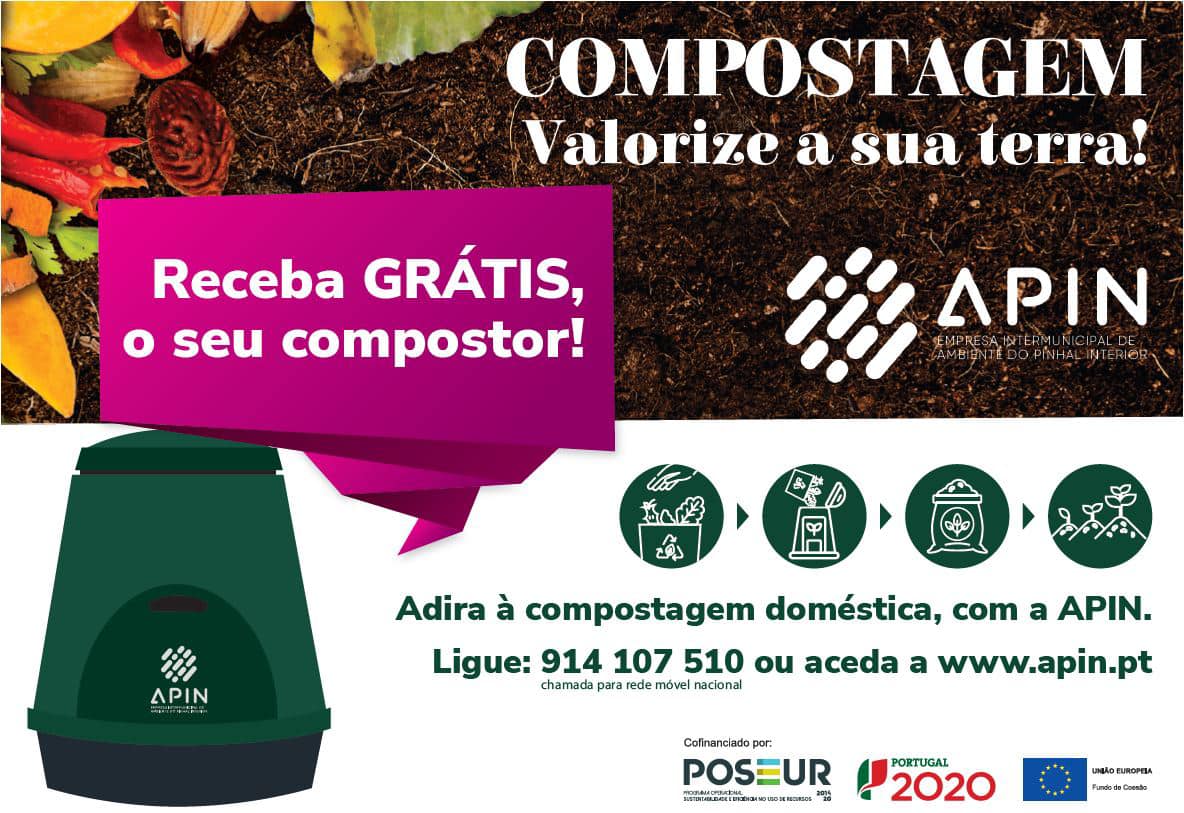 Para adquirir o seu compostor gratuito, ligue para 914 107 510 ou preencha o seguinte formulário de adesão: https://www.apin.pt/compostagem