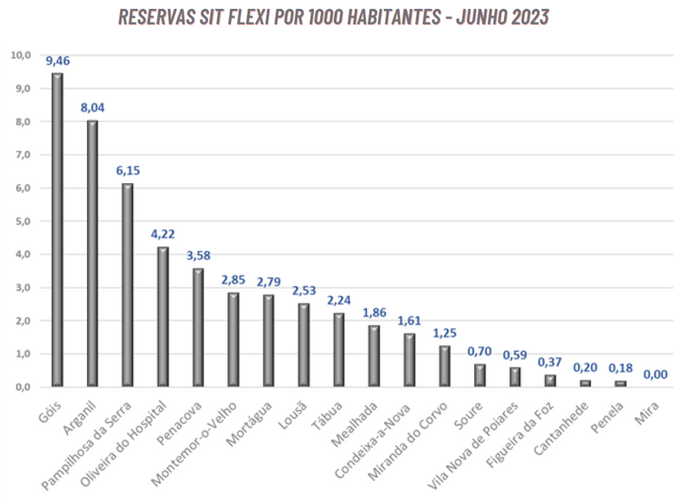 👉 O boletim mensal do SIT FLEXI – Serviço de Transporte Flexível a Pedido, no mês de junho de 2023, registou um total de 566 reservas (novo máximo mensal), distribuídas pelos municípios da Região de Coimbra. Segundo os dados, o Município de Góis registou, em junho, 36 reservas com o SIT FLEXI, sendo que, por cada 1 000 habitantes, Góis foi o Município que mais reservas fez com o SIT FLEXI no mês de junho.