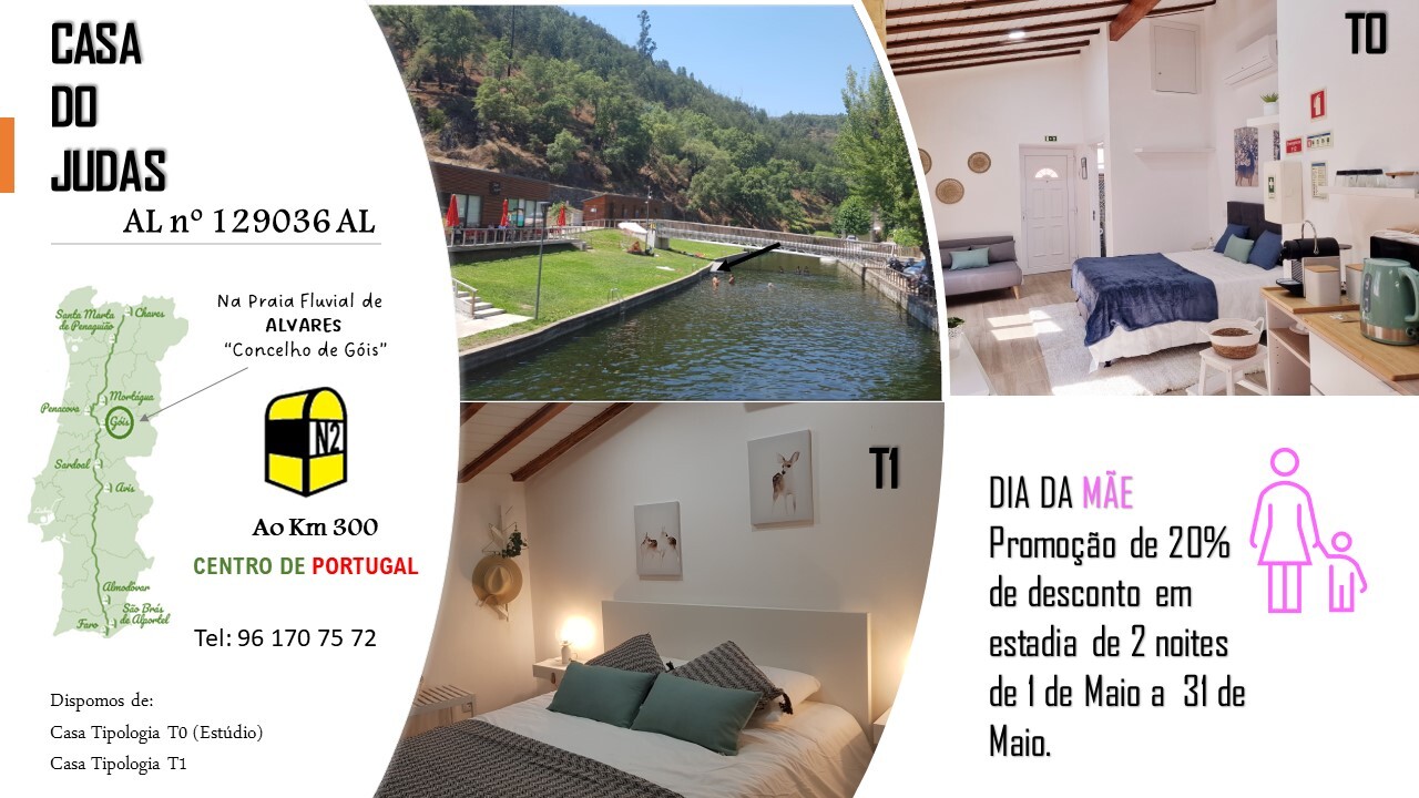 A Casa do Judas disponibiliza uma promoção especial para este dia - 20% de desconto para estadias de 2 noites. A oferta aplica-se a reservas adquiridas até ao dia 5 de Maio e implica que sejam gozadas até dia 31 de maio.