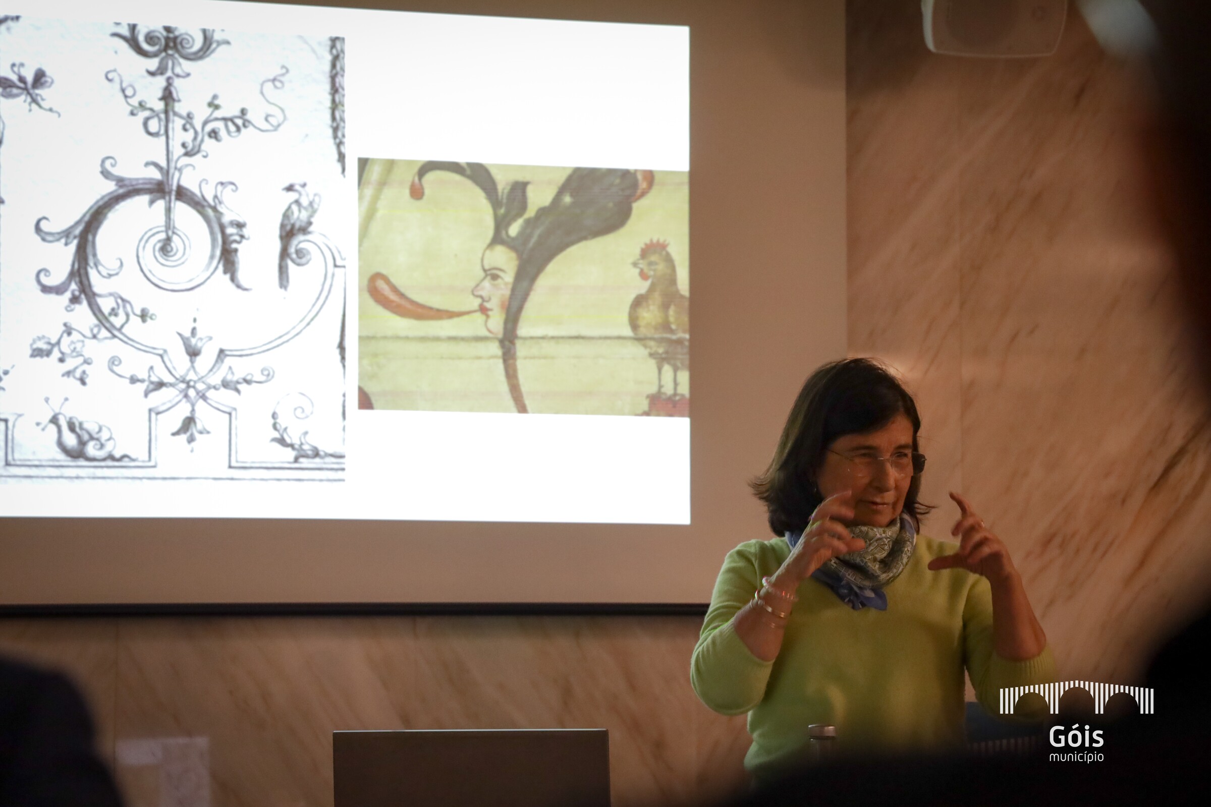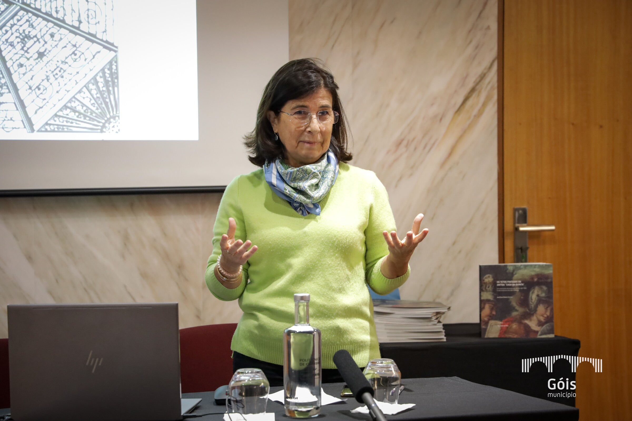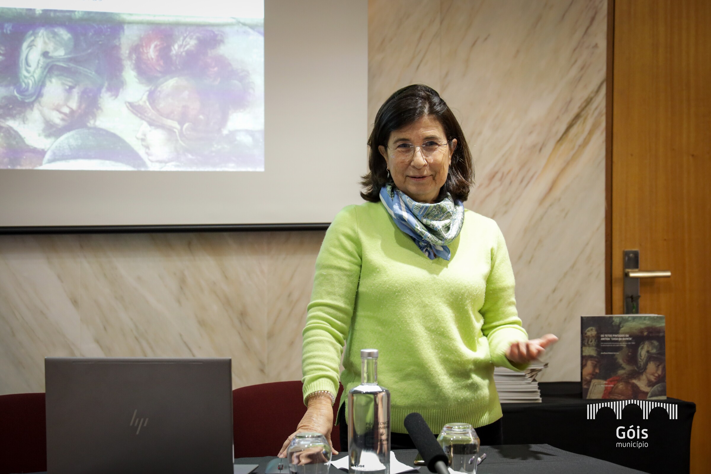 A Professora Doutora Ana Paula Rebelo Correia, historiadora de arte e conceituada especialista em estudos sobre iconografia, apresentou os tetos pintados da antiga Casa da Quinta, na sua qualidade de autora do estudo aprofundado, do ponto de vista artístico e iconográfico dos quatro tetos pintados do edifício da Câmara Municipal de Góis, que lhe foi encomendado pela autarquia, em 2017. Tendo em conta os novos dados trazidos pela investigação, a Câmara Municipal, em 2023, lançou o desafio à autora para apresentar a segunda edição do livro "Os tetos pintados da antiga «Casa da Quinta». Um testemunho de pintura dos séculos XVII/XVIII na decoração de uma casa senhorial".