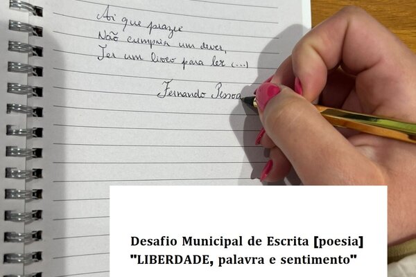 𝐃𝐞𝐬𝐚𝐟𝐢𝐨 𝐌𝐮𝐧𝐢𝐜𝐢𝐩𝐚𝐥 𝐝𝐞 𝐄𝐬𝐜𝐫𝐢𝐭𝐚 [𝐩𝐨𝐞𝐬𝐢𝐚] "𝐋𝐈𝐁𝐄𝐑𝐃𝐀𝐃𝐄, 𝐩𝐚𝐥𝐚𝐯𝐫𝐚 𝐞 𝐬𝐞𝐧𝐭𝐢𝐦𝐞𝐧𝐭𝐨" Ú𝐥𝐭𝐢𝐦𝐨𝐬 𝐝𝐢𝐚𝐬 𝐩𝐚𝐫𝐚 𝐬𝐞 𝐢𝐧𝐬𝐜𝐫𝐞𝐯𝐞𝐫 Tem mais de 18 anos ...2024 Informação ao Munícipe -