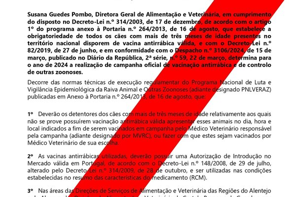 Edital da Campanha de Vacinação Antirrábica e Identificação Eletrónica 2024