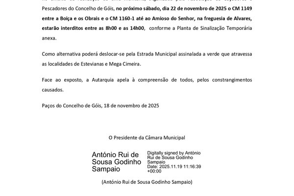 No âmbito da realização de 𝐓𝐫𝐚𝐛𝐚𝐥𝐡𝐨𝐬 𝐝𝐞 𝐀𝐥𝐚𝐫𝐠𝐚𝐦𝐞𝐧𝐭𝐨 𝐝𝐚 𝐕𝐢𝐚 𝐧𝐨 𝐂𝐌 𝟏𝟑𝟔𝟕, 𝐝𝐞 𝐚𝐜𝐞𝐬𝐬𝐨 𝐚̀ 𝐥𝐨𝐜𝐚𝐥𝐢𝐝𝐚𝐝𝐞 𝐝𝐞 𝐏𝐨́𝐯𝐨𝐚 𝐝𝐞 𝐆𝐨́𝐢𝐬, na ...2025 Informação ao Munícipe -