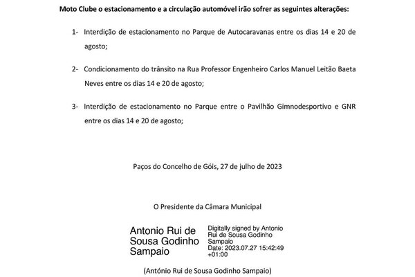 AVISO ℹ️ Interdição de estacionamento no Parque de Autocaravanas entre os dias 14 e 20 de agosto. ℹ️ Condicionamento do ...2023 Informação ao Munícipe -