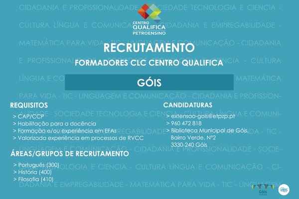 Recrutamento A Extensão de Góis da Escola Tecnológica e Profissional da Zona do Pinhal está a recrutar:Formadores CLC ...2022 Informação ao Munícipe -