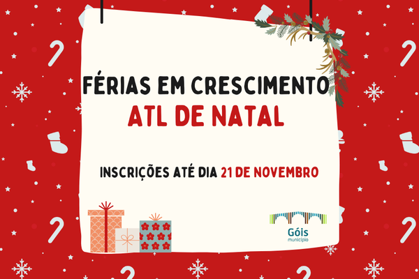 As Férias de Natal estão a chegar O ATL de Natal irá decorrer, no Agrupamento de Escolas de Góis, de 18 de dezembro de 2024 a ...2024 Informação ao Munícipe -