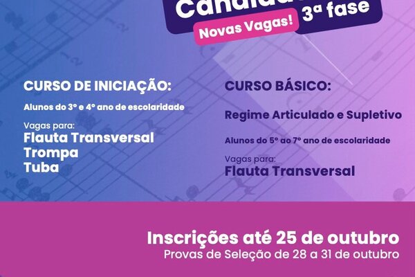 Está aberta a 3ª fase de candidaturas para a frequência do Ensino Artístico Especializado no Polo Educativo de Arganil da ...2024 Informação ao Munícipe
