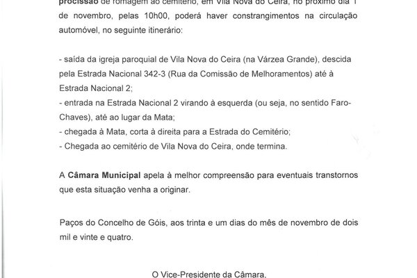 Nuno Miguel Martins Bandeira, Vice-Presidente da Câmara Municipal de Góis, torna público que, no âmbito da realização da ...2024 Informação ao Munícipe -