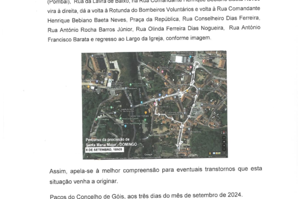 03 Set 2024!! AVISO !! Procissão em Honra de Santa Maria Maior (Góis)